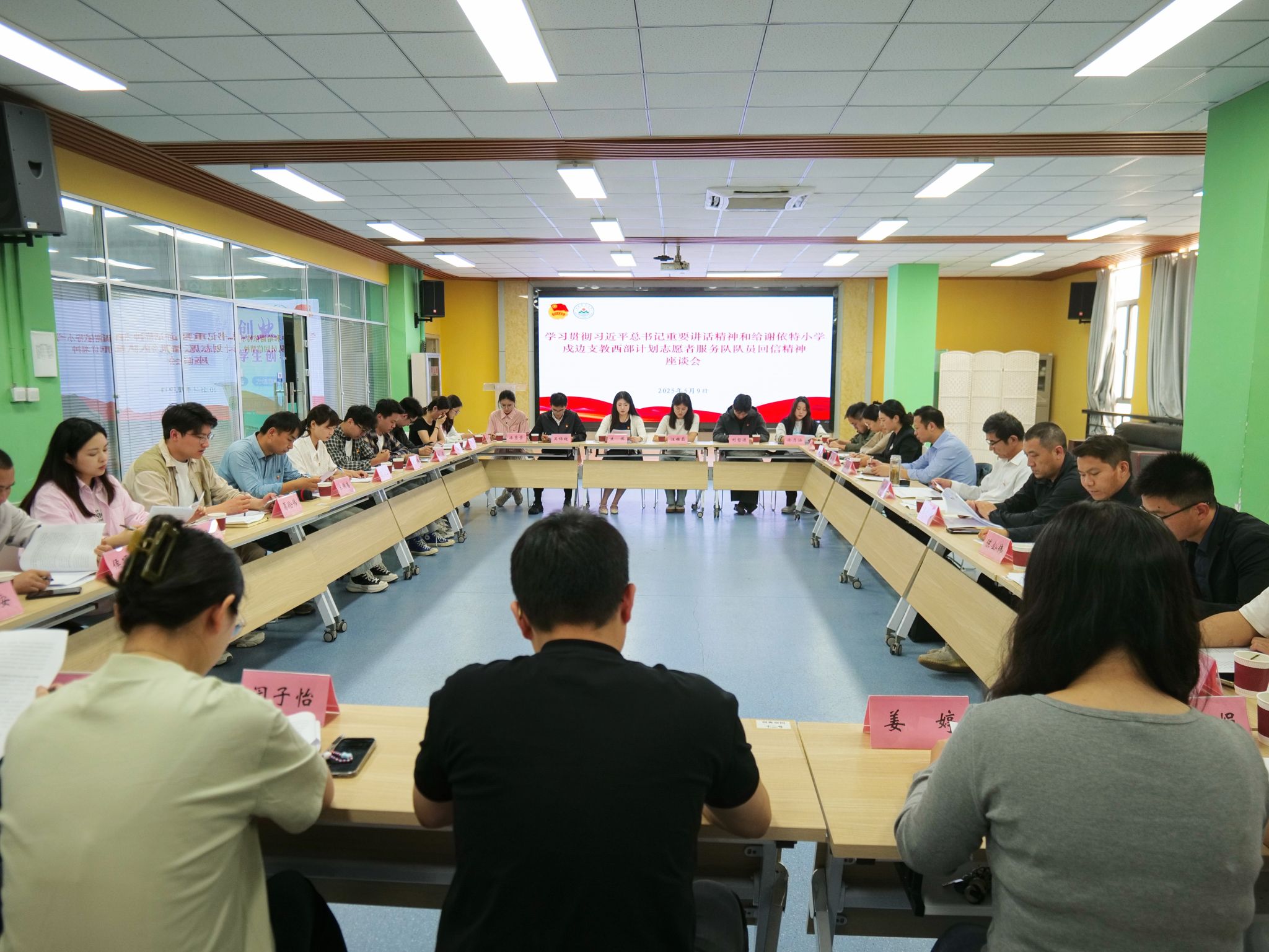 本网讯 5月9日,校团委召开深入学习习近平总书记重要讲话精神和给谢依特小学戍边支教西部计划志愿者服务队队员回信精神座谈会,校党委副书记董雨出席会议并讲话。校党委研究生工作部、学工部、校团委等部门负责人,2025年“安徽青年五四集体奖章”“安徽省优秀共青团干部”获得者,学院团学工作负责老师、专职辅导员代表,西部计划志愿者、研究生支教团及青年志愿者联合会学生代表参加会议。会议由校团委副书记陈公伟主持。