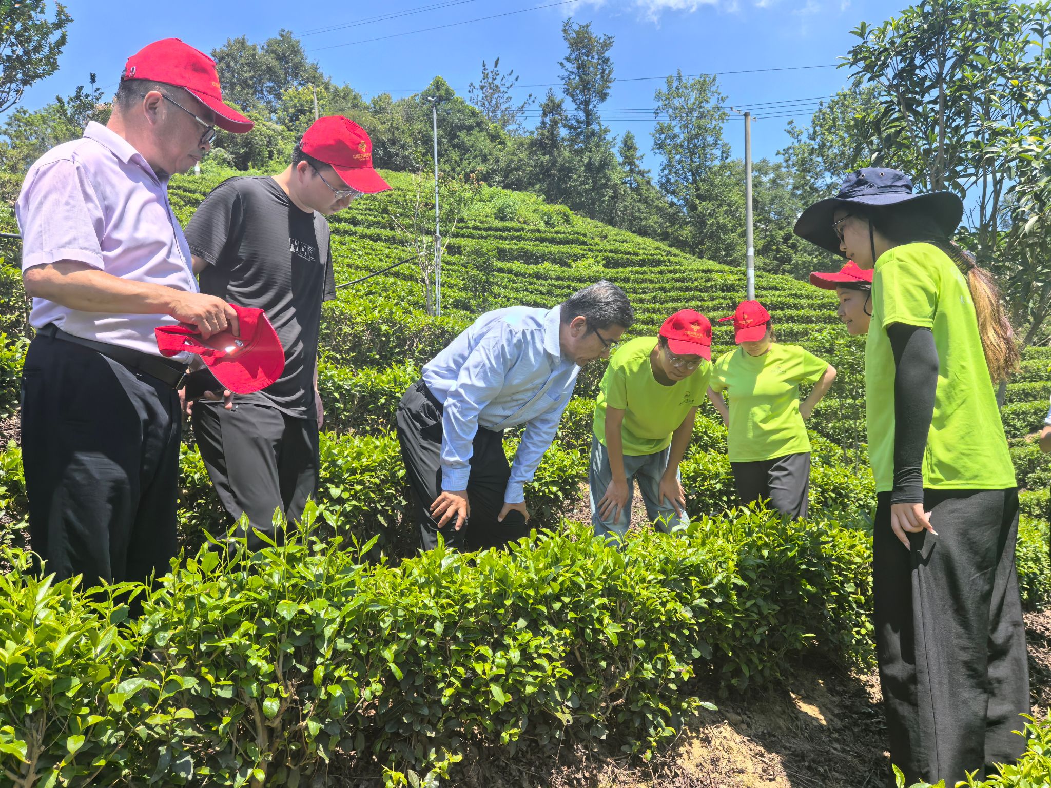 8日上午,董雨首先来到安徽农业大学桐城小花科技小院,实地察看了正在社会实践的茶业学院师生,详细询问活动进展与遇到的困难,并与实践团师生一起亲手体验桐城小花茶制作非遗技艺;在龙眠供销合作社种植基地,他一边查看茶园管理和病虫害防治情况,一边认真听取同学们的实践感悟,对团队取得的成效给予肯定。