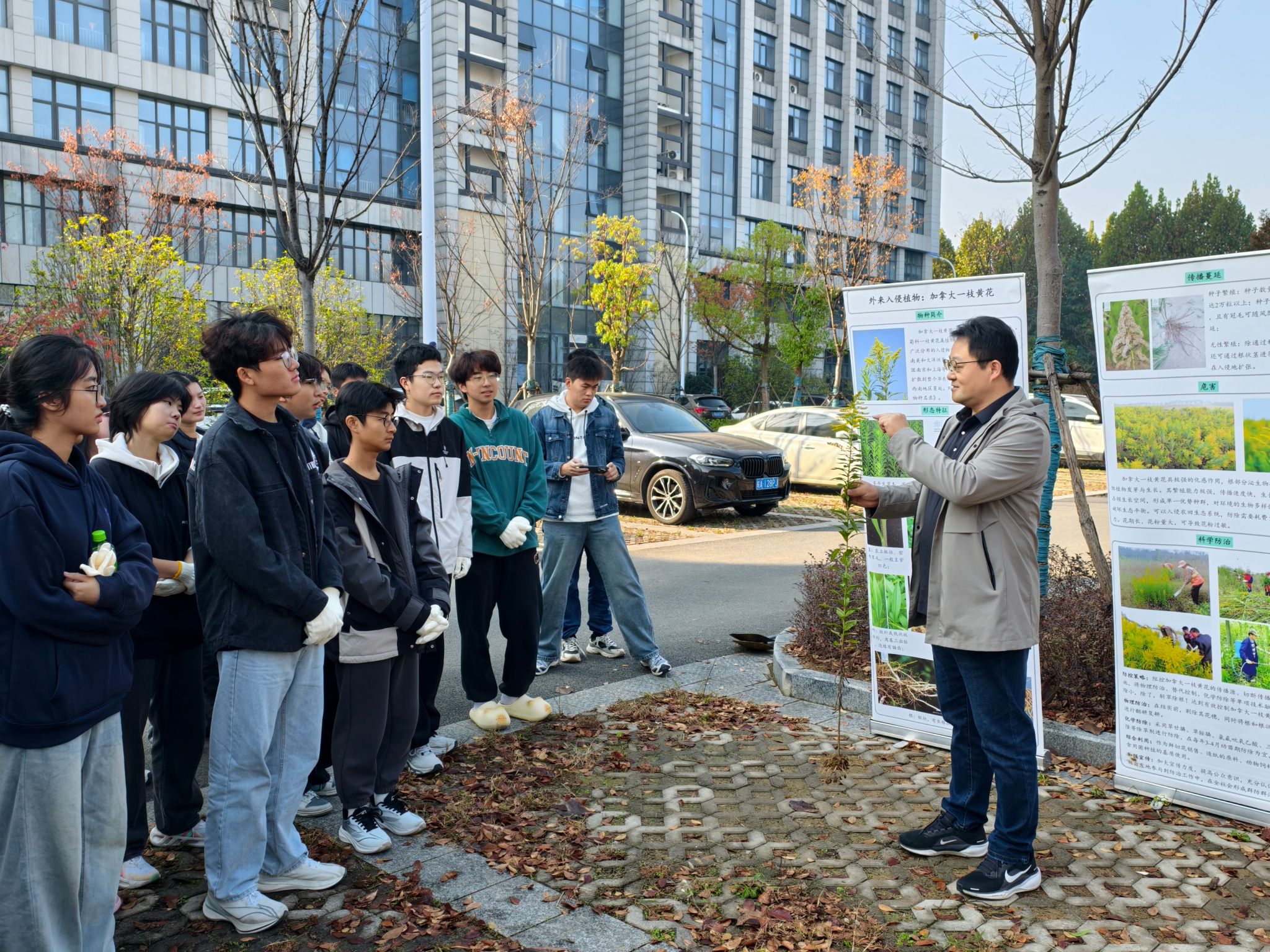 活动伊始,参与师生齐聚于校园内加拿大一枝黄花集中发生地。资源与环境学院张震为同学们进行了生动翔实的科普讲解。他系统介绍了加拿大一枝黄花的组织结构、强大的繁殖与扩散能力,以及其对本地生态系统和生物多样性构成的严重威胁。他强调,有效防治此类外来入侵植物,对于维护校园乃至区域生态安全至关重要,并详细讲解了包括人工拔除、化学防治与生态替代在内的综合防控策略,使同学们对这一“生态杀手”有了科学全面的认知。