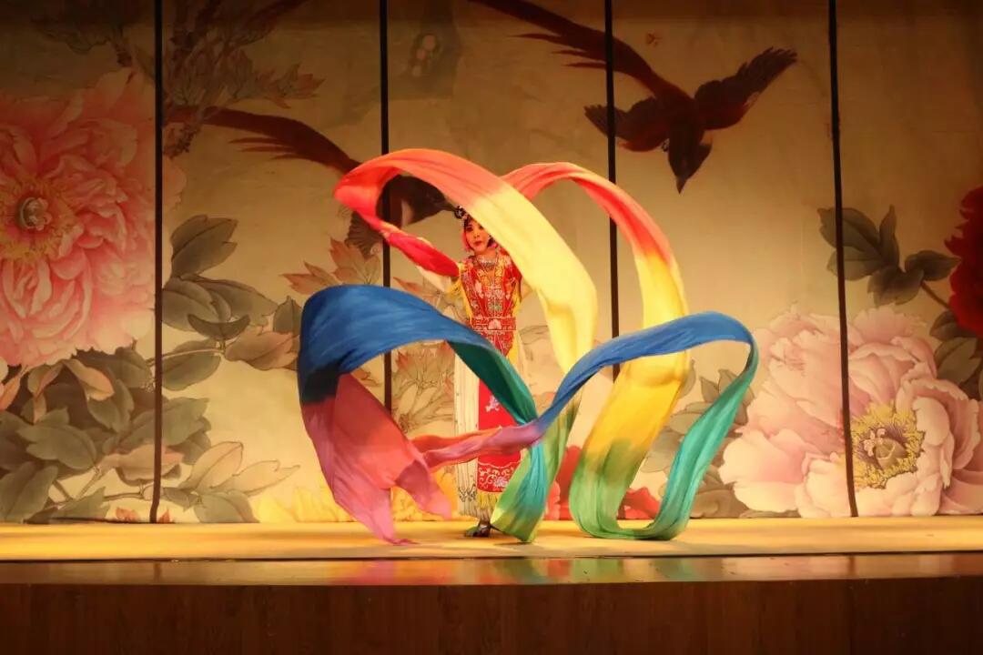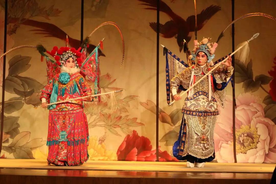 在典雅的音乐中,《天女散花》拉开演出的序幕,精彩的彩绸旋转表演令人叫绝。一代巾帼久怀大志、一心报国的女英雄形象随着《穆柯寨》上演被表现得淋漓尽致。《凤还巢》唱腔华丽别致、明快跌宕、如诉如歌,人物形象被刻画地惟妙惟肖。《三岔口》以一桌一椅对