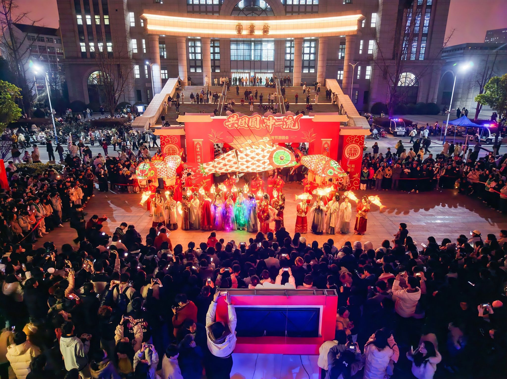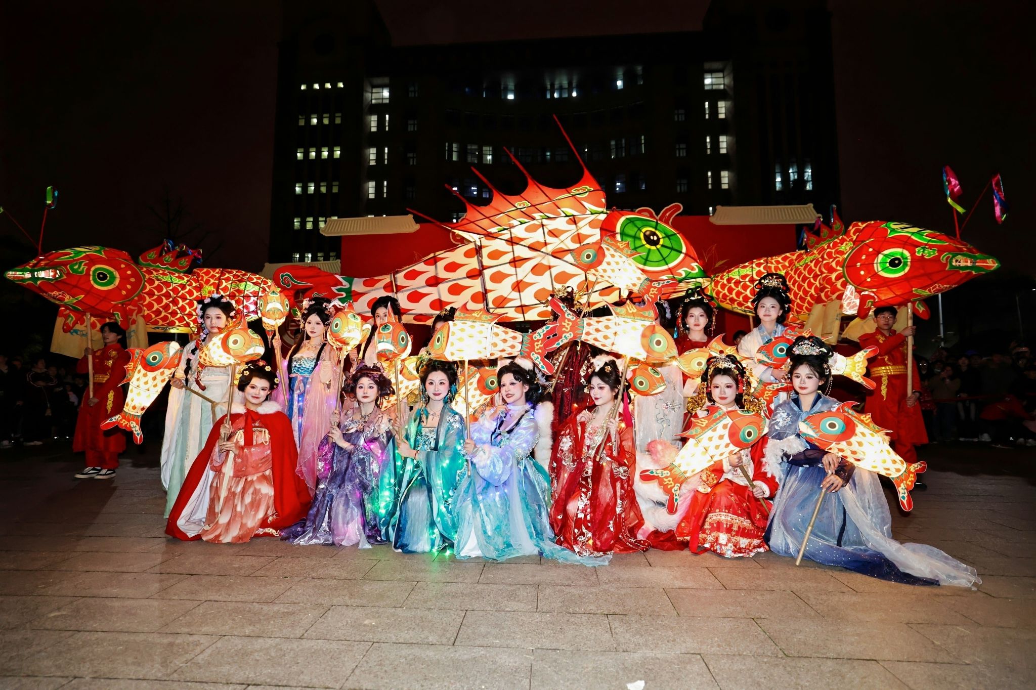 3月3日,农历正月十五,安徽农业大学“骏马迎春闹元宵 奋进一流谱新篇”2026年元宵节游园会开启,校园里华灯初上,由安农学子与鱼灯表演老师联袂呈现的鱼灯巡游正式开始。一盏盏色彩斑斓的鱼灯在夜色中仿佛被赋予了生命,时而悠游摆尾,时而激流勇进。巡游队伍所到之处,师生们纷纷驻足观赏、拍照留念,喝彩声此起彼伏。
