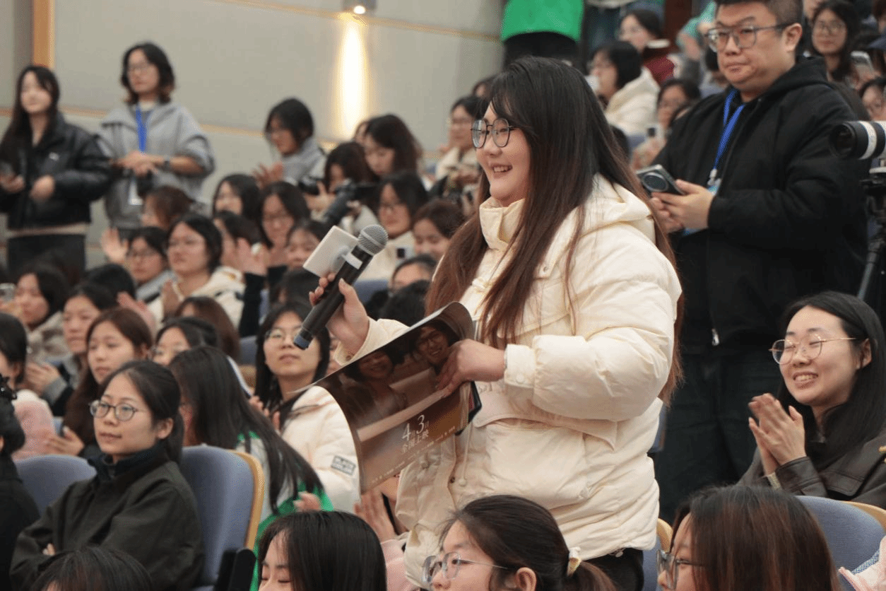 映后交流环节中,影片监制尹露、导演杨荔钠、编剧游晓颖及主演文淇集体亮相,与现场学生展开互动。同学们围绕影片创作背景、母女关系表达及女性成长主题踊跃提问,主创团队真诚回应,分享了创作初衷与幕后故事,交流氛围温馨融洽。为增强互动性,现场还设置了“击鼓传花”“一分钟脱口秀”等环节,让学生们在轻松愉快的氛围中表达观影感受,收获专属校园记忆。