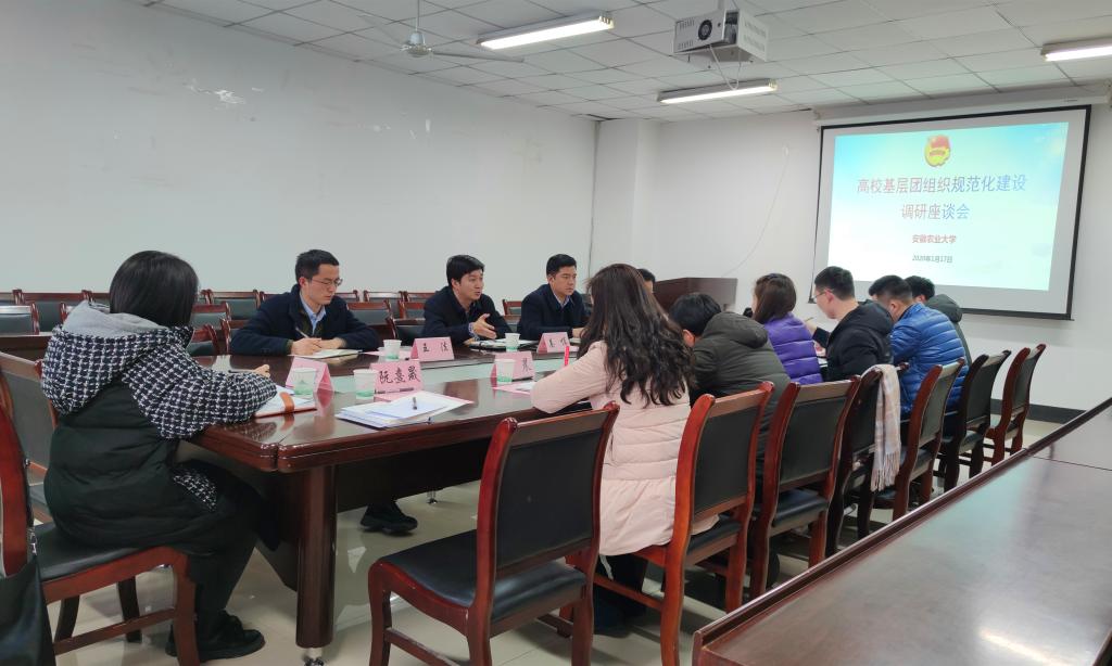 本网讯 1月17日,团省委组织部部长姜慎、副部长王磊等一行四人来我校开展基层团组织规范化建设工作调研。调研座谈会在我校信息与计算机学院406会议室召开,校团委副书记任琪主持会议。