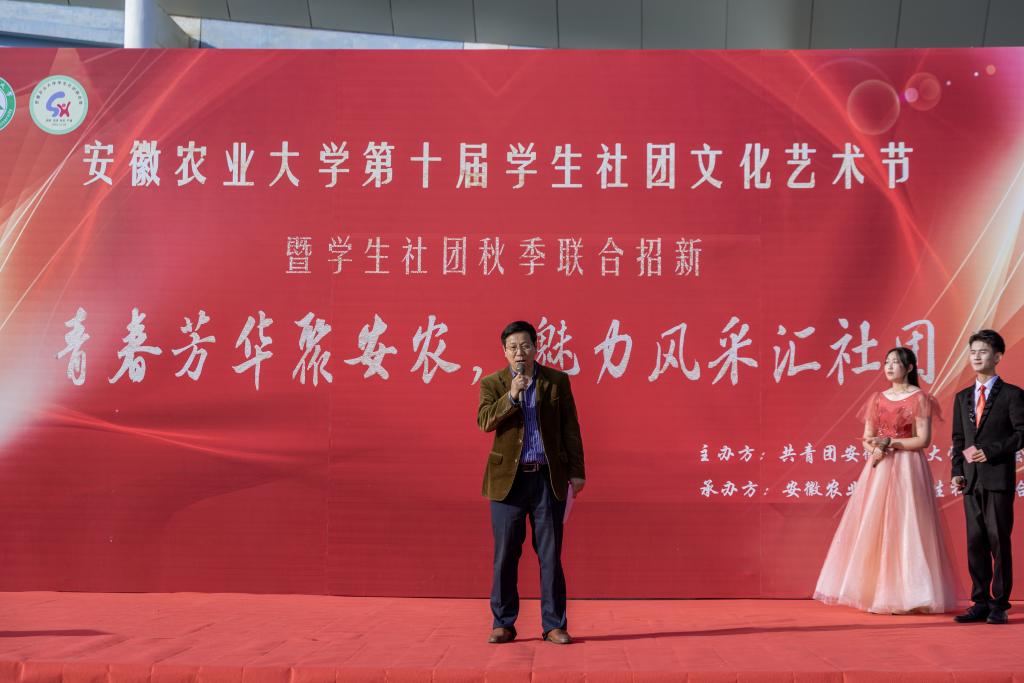 本网讯 10月23日下午,“青春芳华聚安农,魅力风采汇社团”第十届学生社团文化艺术节暨学生社团秋季招新在第二运动场拉开帷幕。校党委副书记裴树东出席开幕式并宣布社团文化艺术节开幕,宣传部、后勤保障处、教务处、学工部(处)、保卫处、团委等单位负责同志参加开幕式。