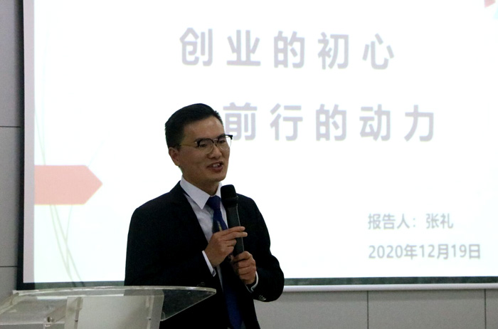张礼结合个人学生时代首次创业的经历,与同学一起探讨了创业的初心。他强调坚持初心做事才会有源源不断的动力,才能更好地将在校期间学到的理论知识运用到工作和创业实践中,努力做到创业成不骄败不馁。在谈到个人创业经历时,他强调创业一定要重视打造企业核心竞争力,用创新的思维去创业,要从失败中汲取教训,勇于实践才会获取成功。最后,他以“我们都还在路上,我们一起加油”来勉励大家,要坚守初心不断前行。