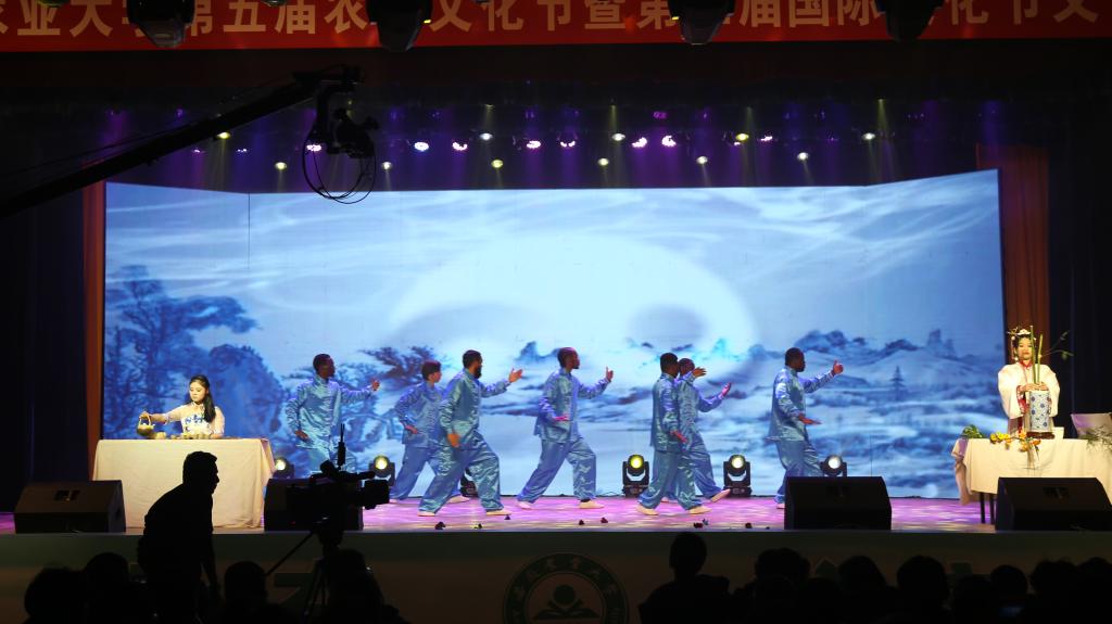 本网讯 12月18日晚,我校第五届农耕文化节暨第三届国际文化节文艺晚会在大礼堂举行,线上同步直播。校领导江春、裴树东、李红、马传喜、陈文兵,机关各部门、校直各单位主要负责人,各学院负责人和近千名师生在现场观看,1.15万人次通过线上直播共同观看了晚会。