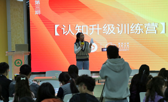 本网讯 为提升大学生创新创业意识和能力,3月28日,由校团委和混沌大学合肥分社联合主办的大学生创客空间系列创新创业训练营——第3期“认知升级训练营”在我校创客空间A区路演大厅成功举办。混沌大学合肥分社知名创新教练、部分学院团委老师、创业指导老师以及63名同学参加了训练营。