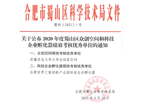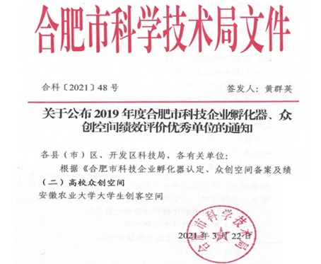 本网讯 近日,我校大学生创客空间在合肥市、蜀山区2020年度众创空间绩效评价中均被评为优秀等级,是全市高校众创空间唯一获此殊荣的单位。
