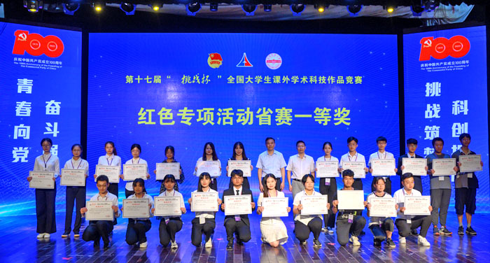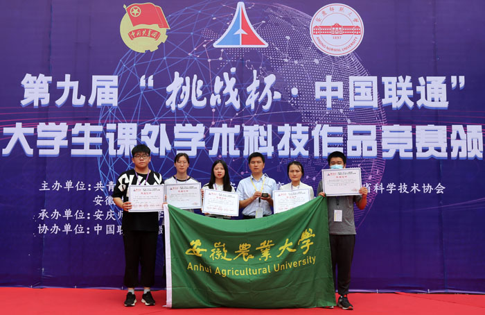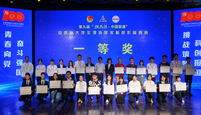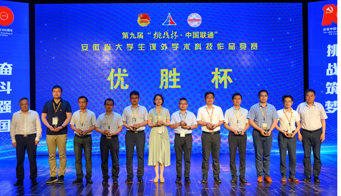 本网讯 6月21日,由共青团安徽省委员会、安徽省教育厅、安徽省科学技术协会、安徽省社会科学院、安徽省学生联合会等单位共同主办的第九届“挑战杯·中国联通”安徽省大学生课外学术科技作品竞赛颁奖仪式在安庆师范大学落下帷幕。我校报送的10件作品获得一等奖3项,二等奖6项,三等奖1项,学校荣获“优胜杯”。同时,我校在“挑战杯”红色专项中获得全国一等奖1项、三等奖1项,全省仅有5件作品获得全国一等奖;安徽省一等奖4项、二等奖6项、三等奖11项。