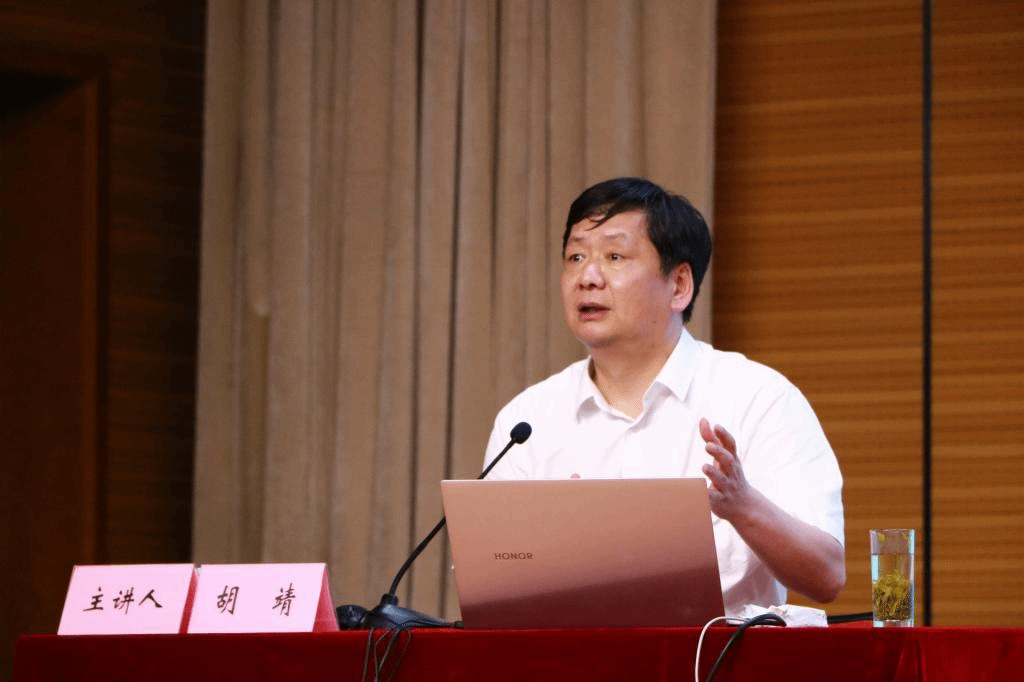 最后,胡靖用习近平总书记的三句话结束讲座:中华民族的昨天,可以说是“雄关漫道真如铁”,中华民族的今天,正可谓“人间正道是沧桑”,中华民族的明天,可以说是“长风破浪会有时”。他勉励同学们不忘初心、继续前行,心怀远大理想,奔赴崇高追求,勇担代代相传之重任。讲座在现场师生热烈的掌声中圆满结束。