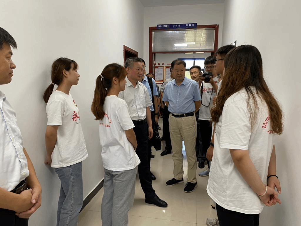 最后,在金寨县双河镇大畈村会议室召开暑期“三下乡”社会实践师生座谈会暨社会实践基地挂牌仪式。江春认真听取师生代表发言后,他对广大师生积极参与暑期“三下乡”社会实践的热情和行动给予充分肯定。他希望同学们要深学细悟,学好习近平新时代中国特色社会主义思想,更加坚定“四个自信”,不断增强做中国人的志气骨气底气,自觉把个人梦想同祖国的前途、党和人民的事业紧密联系在一起。要能立大志,明大德、成大才、担大任,从革命先辈身上感悟成长成才之道,在攀登知识高峰的历程中追求卓越,让勤奋学习成为青春远航的动力,让增长本领成为青春搏击的能量,努力成长为“一懂两爱”农业人才。要深入实践,沉下心来,俯下身来,真诚聆听基层一线群众的心声,将所学知识运用到服务乡村振兴的实践中,助力巩固拓展脱贫攻坚成果与乡村振兴有效衔接,不辱使命、不负韶华、不负时代,让青春在为党为国为民的奉献中焕发绚丽光彩。