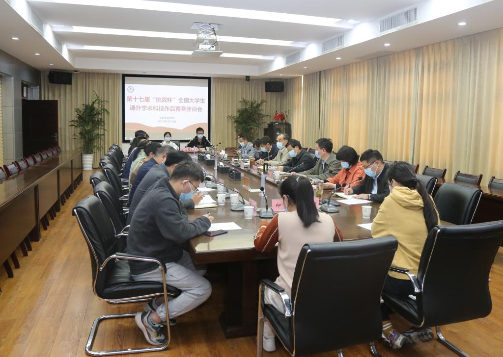本网讯 4月14日下午,我校在第三会议室召开第十七届“挑战杯”全国大学生课外学术科技作品竞赛获奖师生座谈会。校长夏涛、常务副校长马传喜出席会议。校党委副书记裴树东主持会议。教务处、创新创业学院、科技处、学工部、研工部、招生就业处、团委等部门负责同志,各参赛团队所在学院党委负责同志、指导教师及参赛学生代表参加了座谈会。