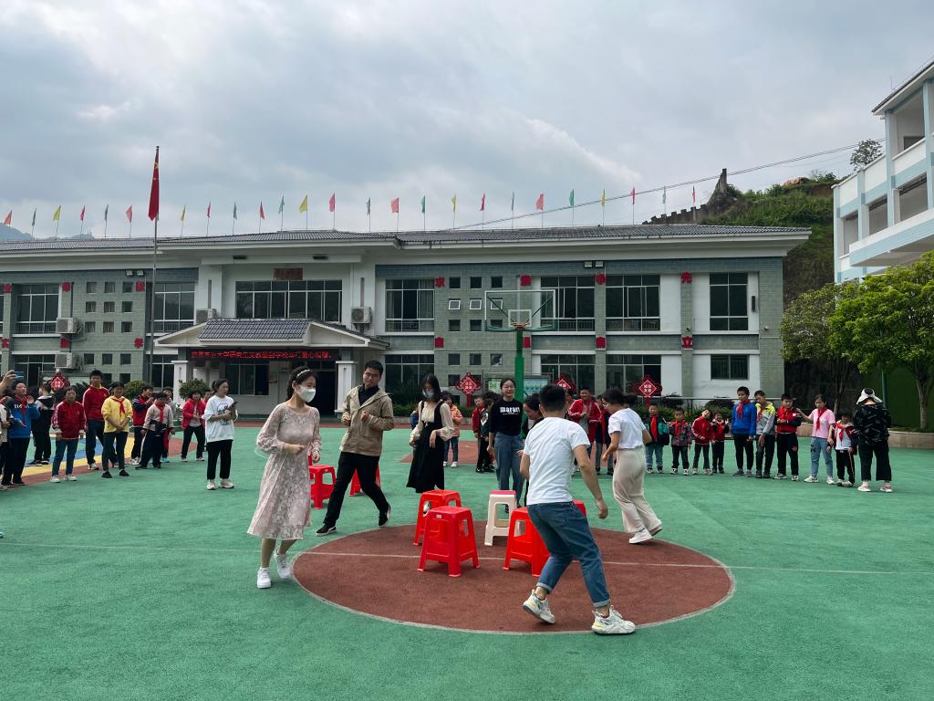 发放仪式结束后,安农大研支团队员们和孩子们进行了“抢椅子”和“爱的抱抱”小游戏,游戏过程别样精彩,学生们在小游戏中,积极参与,体验快乐,学会感恩。