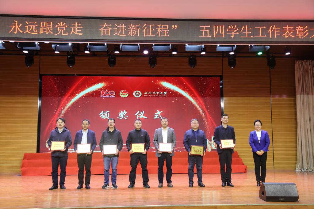 校党委副书记裴树东向全体师生表达了节日的祝福,并向受表彰集体和个人表示祝贺,希望大家珍惜荣誉、坚守初心、接续奋斗,再立新功。他要求,广大青年要深入学习领会习近平总书记在中国人民大学考察时的重要讲话精神,立足新时代新征程,坚定不移听党话、跟党走,努力成长为堪当民族复兴重任的时代新人。他希望,广大青年要心中有信仰,做理想坚定的新时代青年;心中有学识,做本领过硬的新时代青年;心中有担当,做堪当重任的新时代青年。他强调,广大青年要牢记习近平总书记嘱托,牢记党的教诲,立志民族复兴,不负韶华,不负时代,不负人民,勇于奋斗,善于奋斗,不懈奋斗,努力在乡村振兴、疫情防控、生态环保、科技攻关以及服务我省“两强一增”行动计划等各项任务中不断提升自我、超越自我,在实现中华民族伟大复兴这场接力赛上,争取跑出当代安农青年的最好成绩。