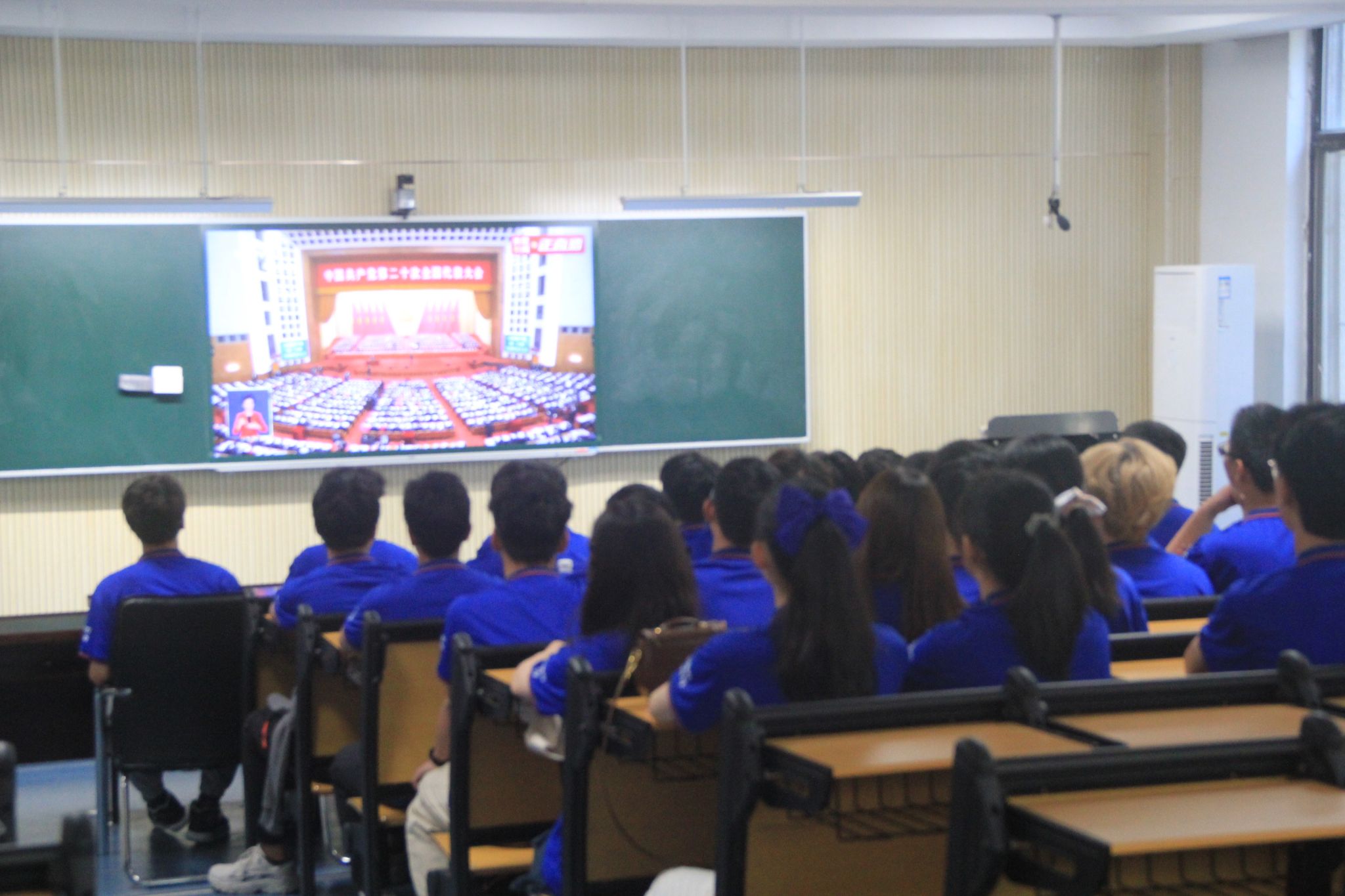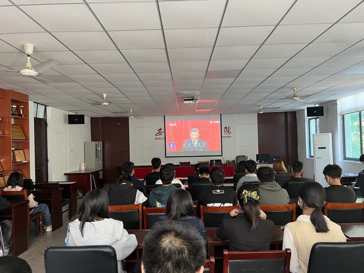 各班级团支部高度重视,采用集中和分散相结合的方式收听收看大会直播盛况。