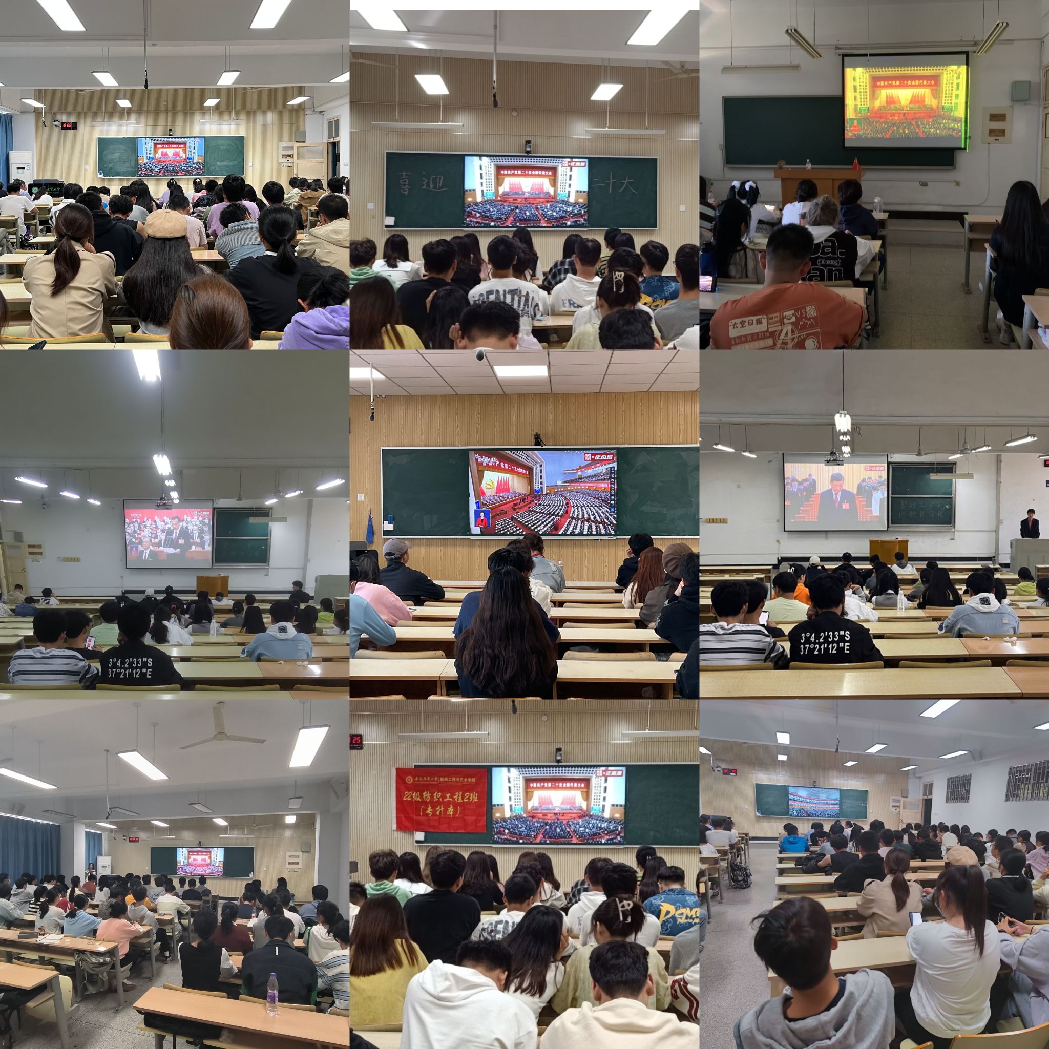 本网讯 10月16日上午,中国共产党第二十次全国代表大会在北京人民大会堂开幕,轻纺工程与艺术学院高度重视,认真组织各团支部、学生会采取集中和分散形式观看了开幕会的现场直播。