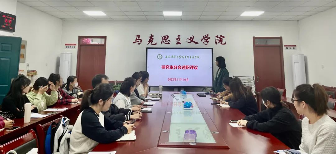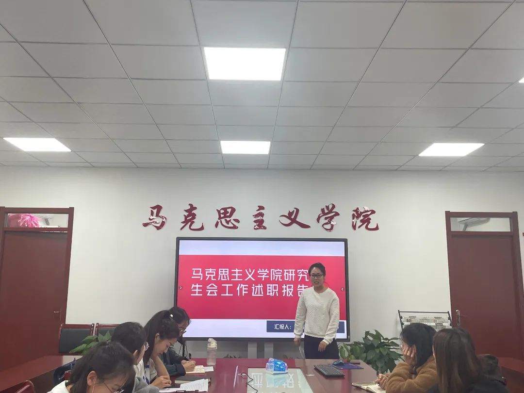 本网讯 为响应团中央、全国学联印发的《关于推动高校学生会(研究生会)深化改革的若干意见的通知》要求,进一步加强马克思主义学院研究生分会组织建设,规范学生干部的考核、培养和监督机制,11月10日下午,马克思主义学院在人文楼302召开2021-2022学年研究生分会述职评议大会。团委书记徐梦琦、辅导员孙刘琴以及研究生分会全体成员参加会议,会议由研究生分会主席冯晓丽主持。