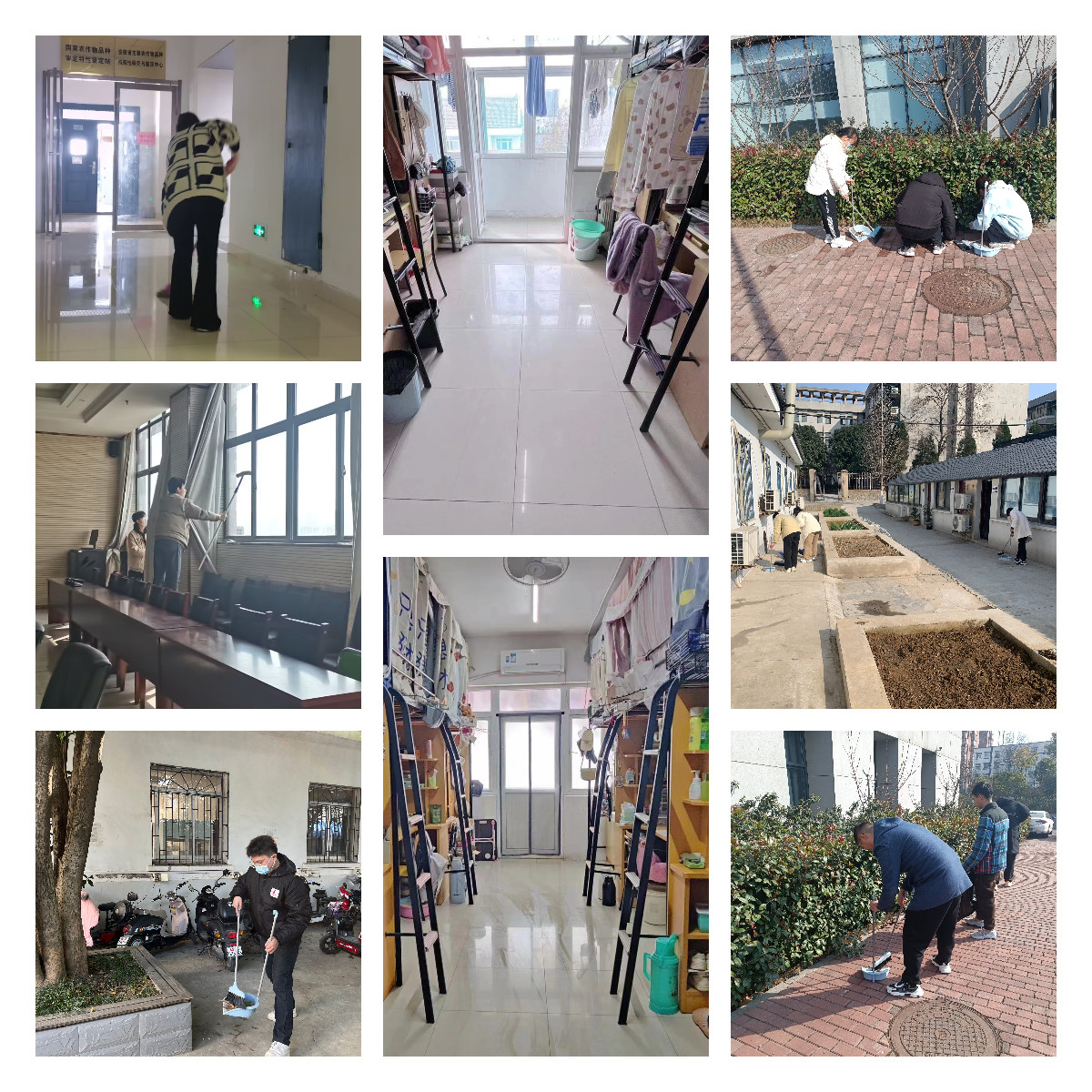 聚焦劳动育人,全覆盖开展“爱卫”志愿服务。爱国卫生运动要从自身做起。周一下午,学院组织学生党员、入党积极分子,按照校园责任区环境卫生要求,开展集中大清扫。周二中午,学院全体辅导员下沉一线,带领班干和网格员,对学生宿舍开展集中大清扫。