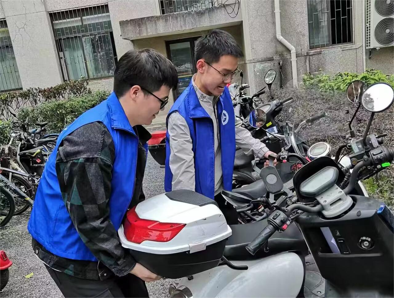 文明先锋队志愿者每天在工学院门口值班,引导师生上下班、上下课期间有序、规范停靠电动自行车;每周定期检查学院各办公室卫生,整理负面清单,协助学院督促各办公室维持环境责任区整洁,营造干净、整洁、有序的工作环境。