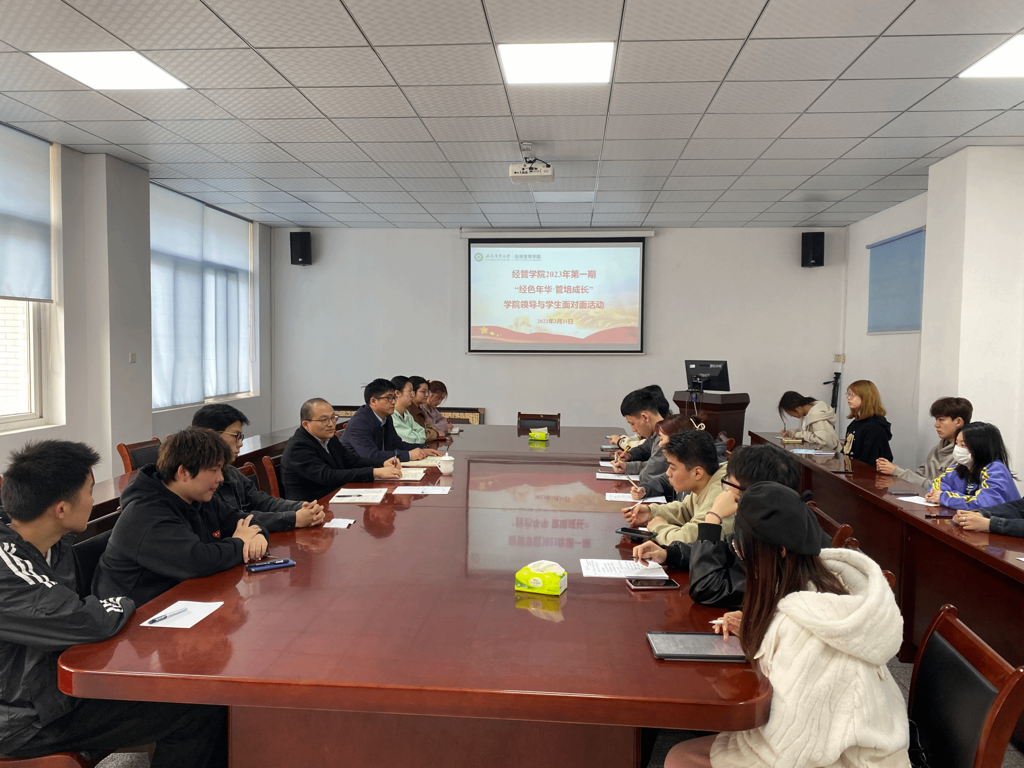 本网讯 3月31日上午,经济管理学院举行“经色年华·管培成长”学院领导与学生面对面活动,来自不同班级的21名学生代表参加了座谈。院党委书记赵智,院党委副书记、纪委书记、副院长吴国卿参加了会议。