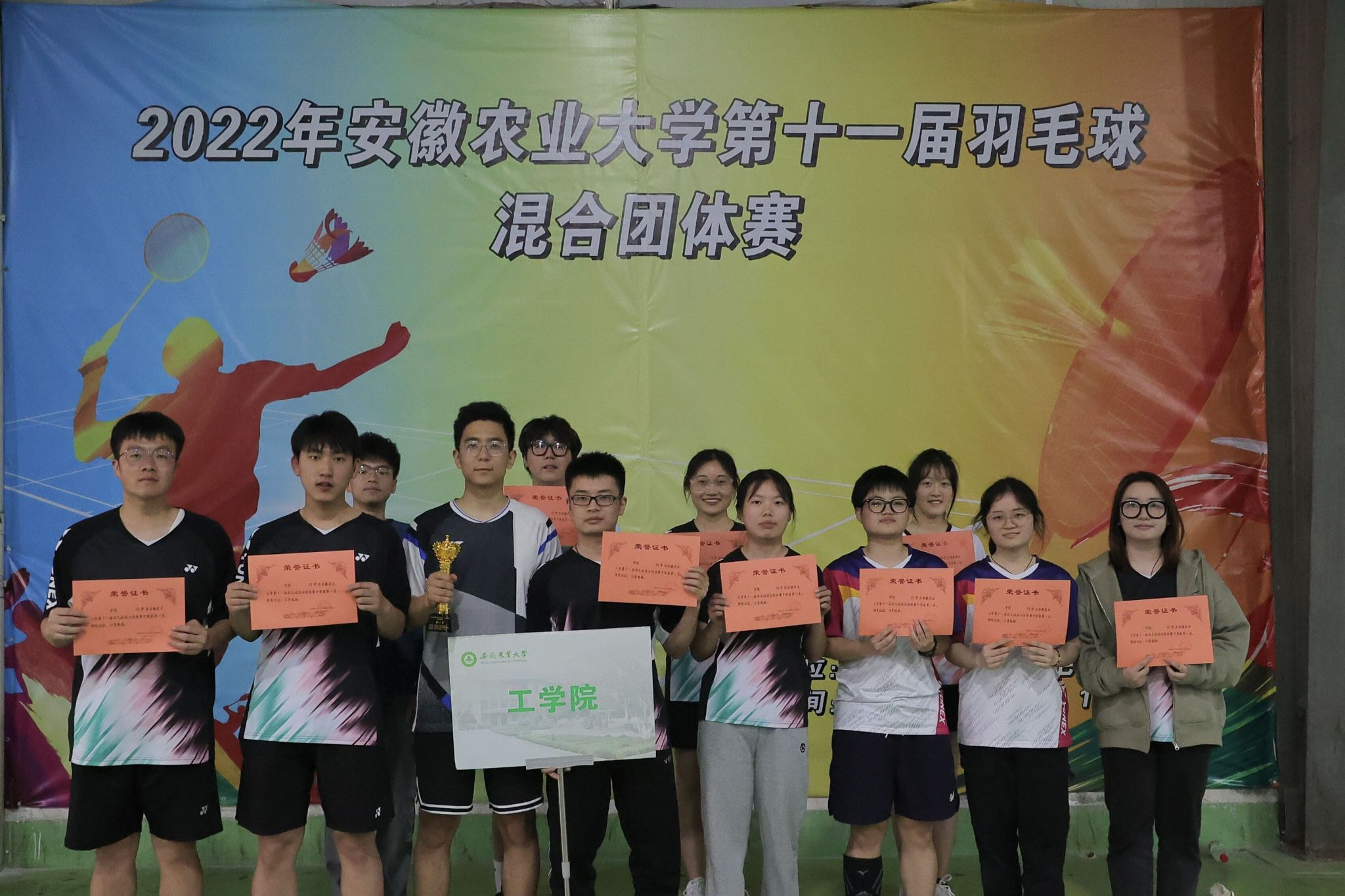 本次比赛设男子、女子单打,男子、女子双打和混合双打五个项目,共有150名运动员参赛。工学院羽毛球队10名队员充分发扬团结拼搏、奋勇争先的体育精神,经过激烈鏖战,最终赢得本届羽毛球混合团体赛事冠军。(一审:翟施程 二审:刘灿 三审:张国学 )