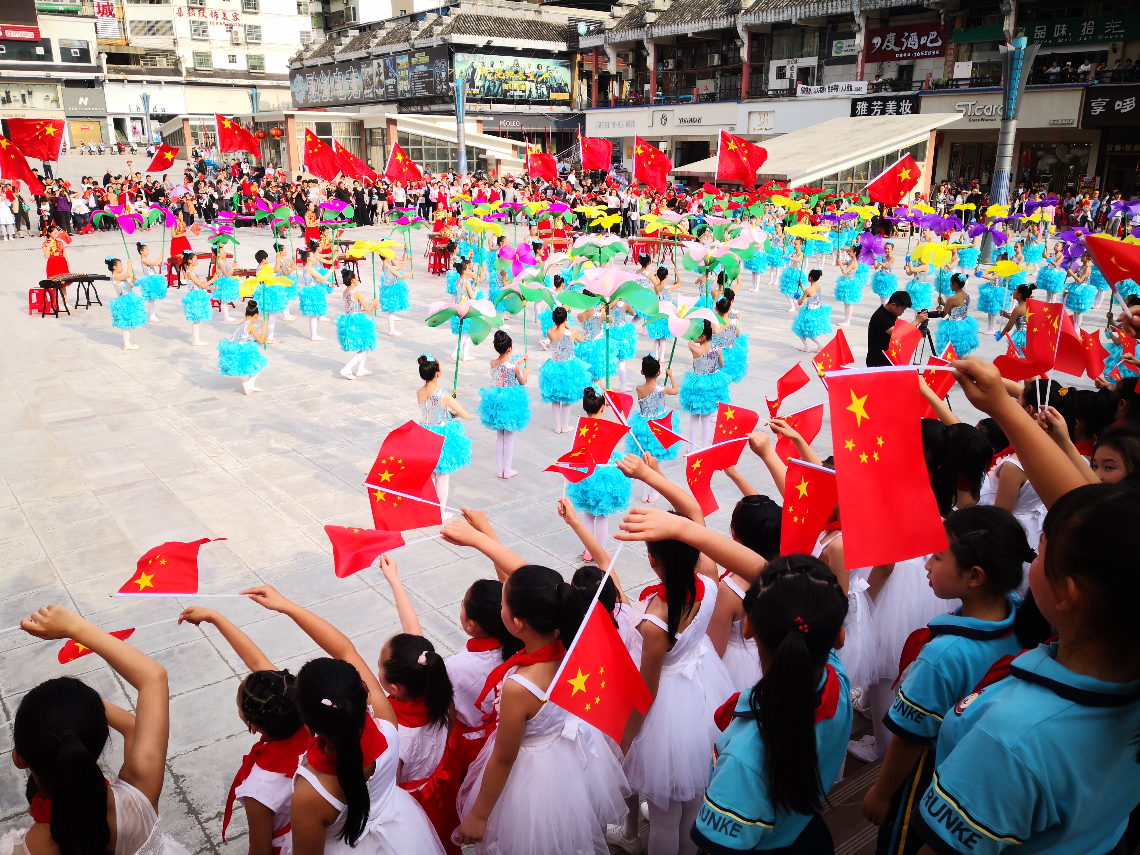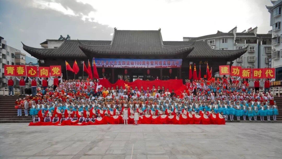 本网讯 2019年是新中国成立70周年,也是五四运动100周年。5月1日,由中共石阡县委宣传部、中共石阡县委教育工作委员会指导,共青团石阡县委、石阡县文体广电旅游局、石阡县教育局、石阡县融媒体中心联合主办的“我的青春我的团”红色快闪活动在石阡县西门广场举行,安徽农业大学研究生支教团成员借此契机,以青春之名、以奉献之心,为祖国献礼。