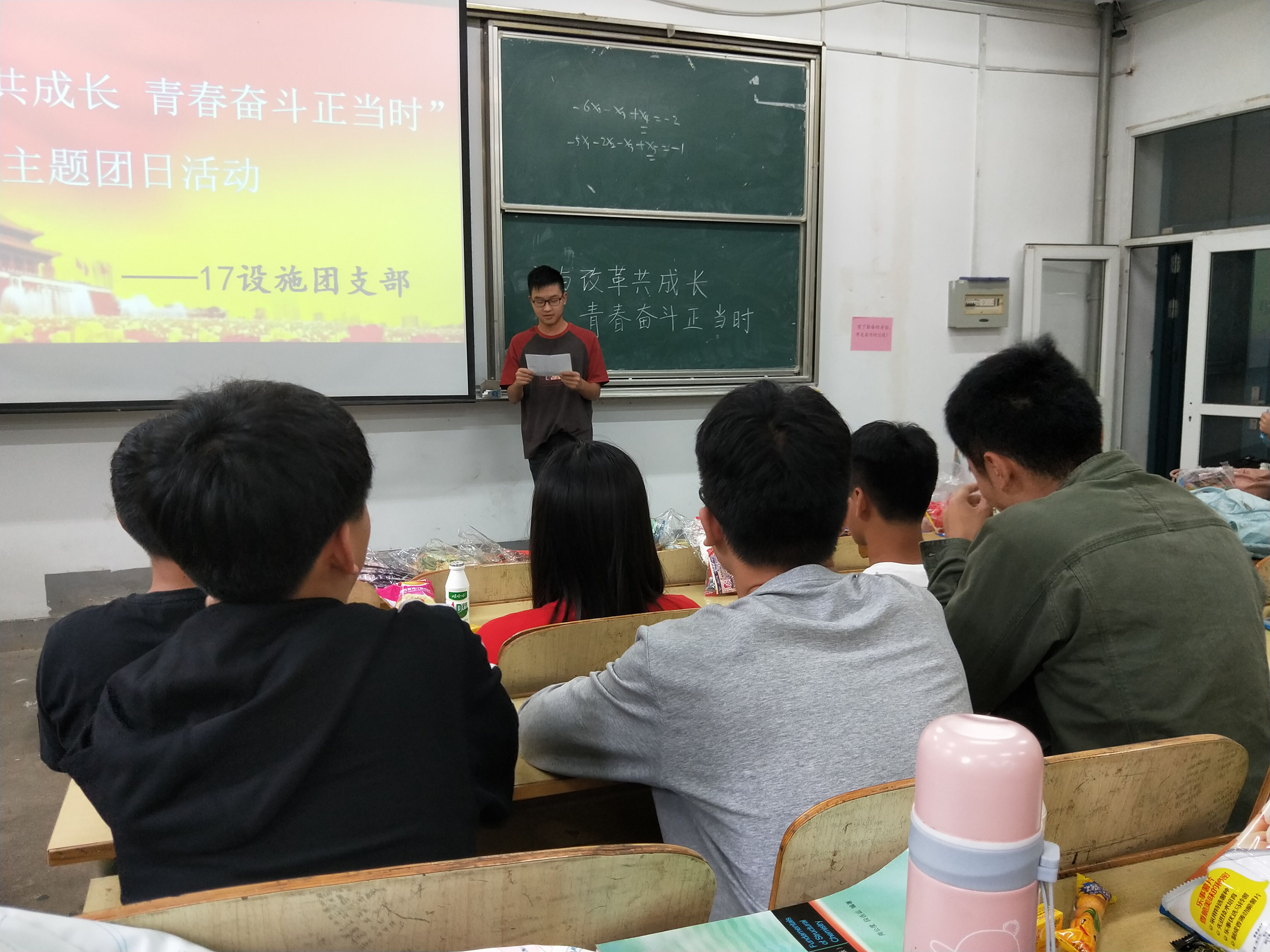 本网讯 为纪念改革开放40周年,引导广大团员青年回顾改革开放走过的伟大历程和取得的巨大成就,10月9日,2017级设施农业科学与工程专业团支部在二教240以“我与改革共成长,青春奋斗正当时”为主题开展主题团日活动。