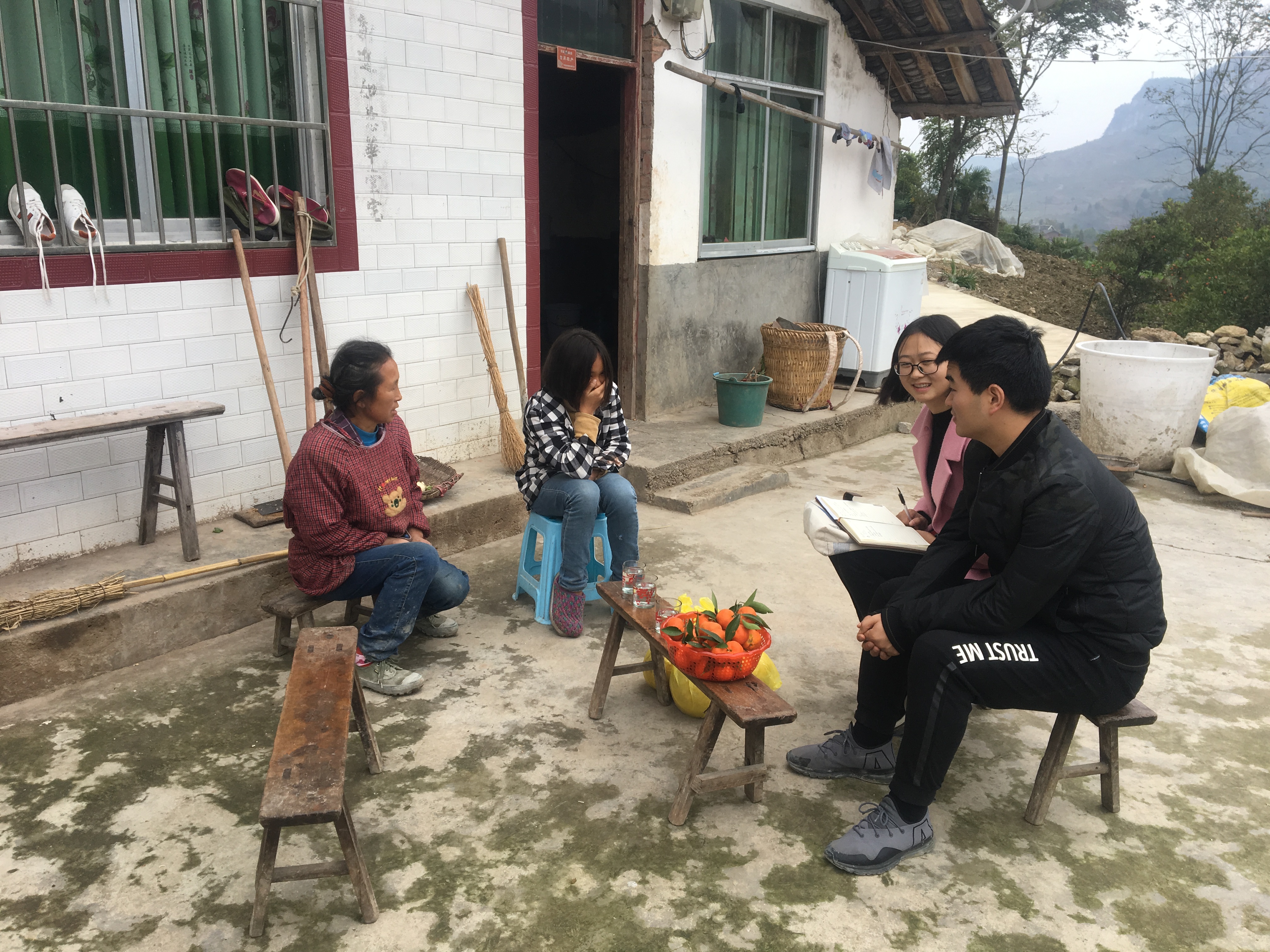 安徽农业大学研支团走进学生家里讲解毒品的危害。安徽农业大学研支团 供图