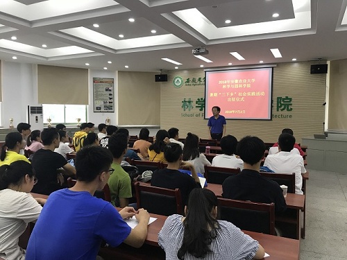 本网讯 7月2日下午,林学与园林学院2018暑期“三下乡”实践活动出征仪式在林学楼二楼报告厅举行,学院党政领导刘盛全、江正君、徐斌以及院团委老师参加了出征仪式。仪式由院团委老师主持,各支出征队伍参加仪式。
