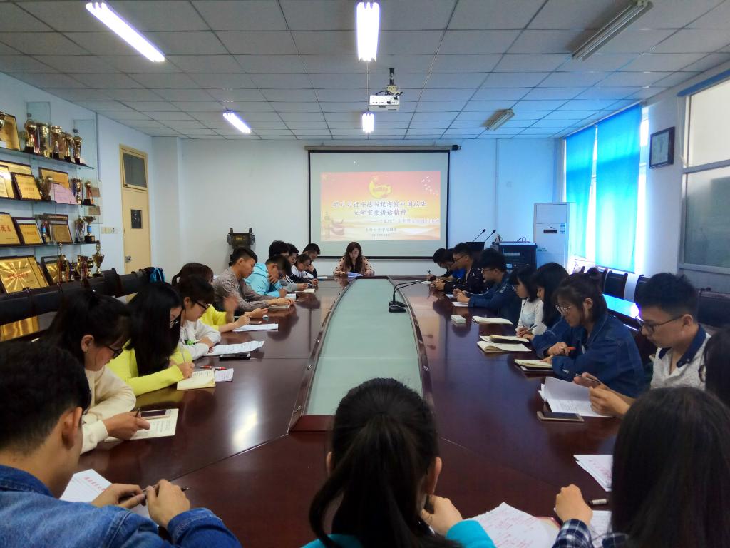 会上,与会同学集体观看了《新闻联播》关于习近平总书记在中国政法大学考察的报道,并对总书记重要讲话精神进行了深入学习和热烈讨论。接着,院团委老师带领大家共同回顾了近年来习近平总书记的“青春寄语录”,从“五点希望”到“八字真经”再到“十六字诀”,号召广大团员要充分学习和领会习近平总书记的讲话精神,牢记总书记的殷切嘱托,要坚定信念跟党走,不忘初心,不负韶华,要青春使命勇担当,励志勤学,刻苦磨练,为中华民族伟大复兴中国梦的实现贡献青春力量。同学们纷纷表示在寄语中感受到了总书记的殷切期盼和温暖关切,会坚定不移跟党走,做胸怀理想、志存高远、勇立潮头、敢做先锋的青年人,在激情奋斗中绽放青春光芒,在追寻中国梦的征程中放飞青春梦想。