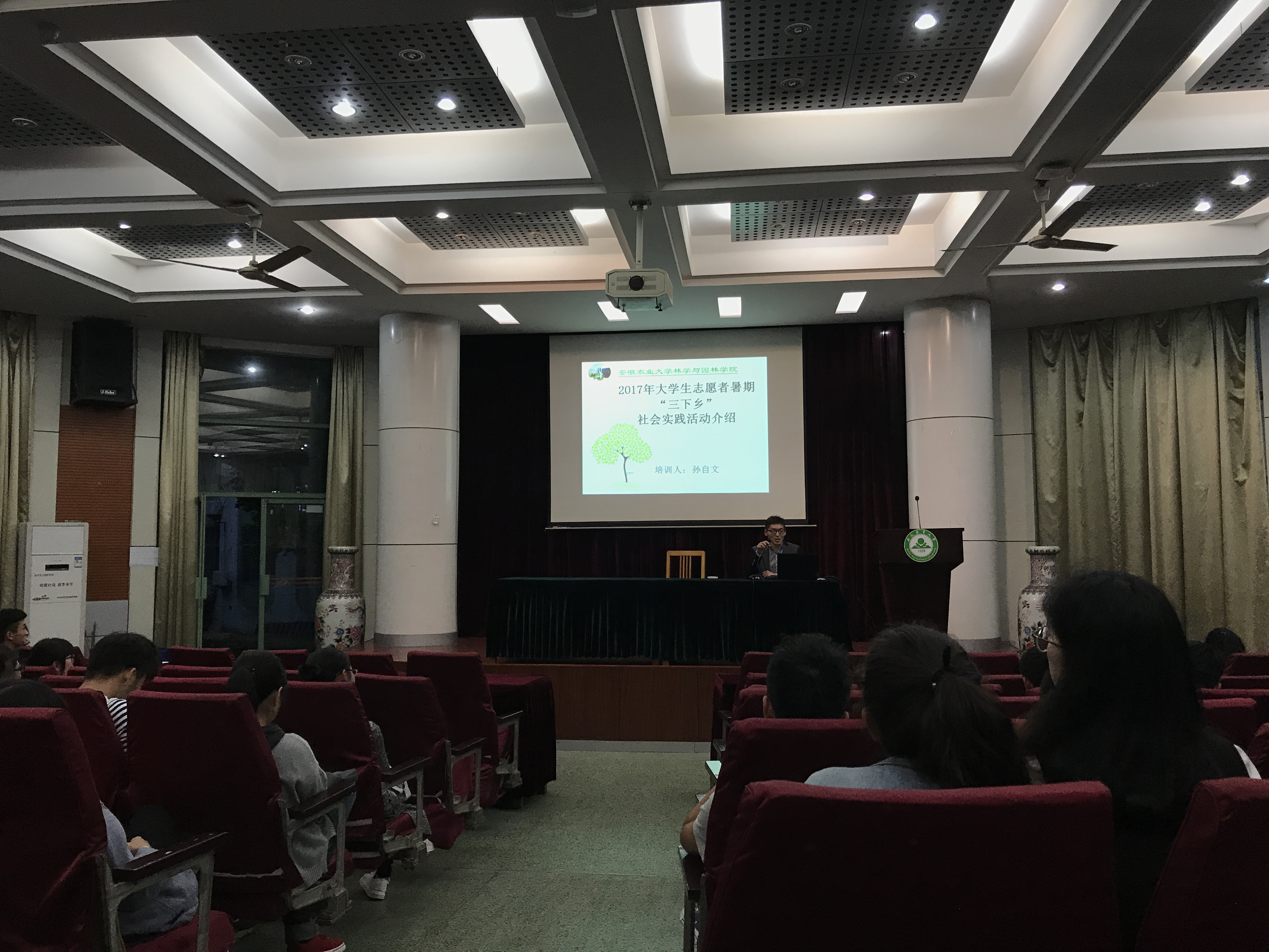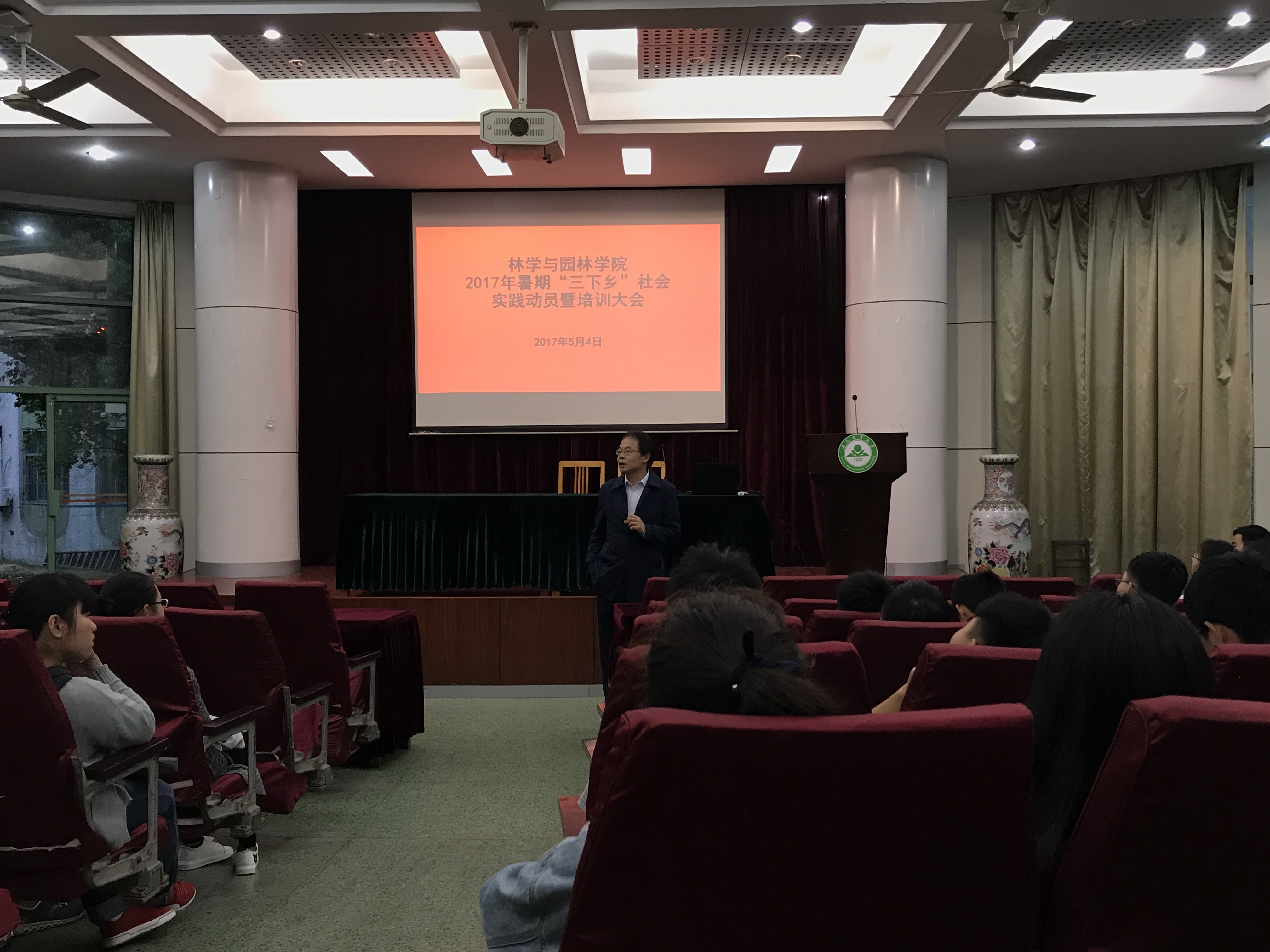 为积极响应团省委和校团委有关大学生开展暑期“三下乡”社会实践活动的号召, 5月4日晚,林学与园林学院举办了2017年暑期“三下乡“动员暨培训大会,学院党委副书记、副院长江正君,院团委老师及各班级学生代表参加会议。