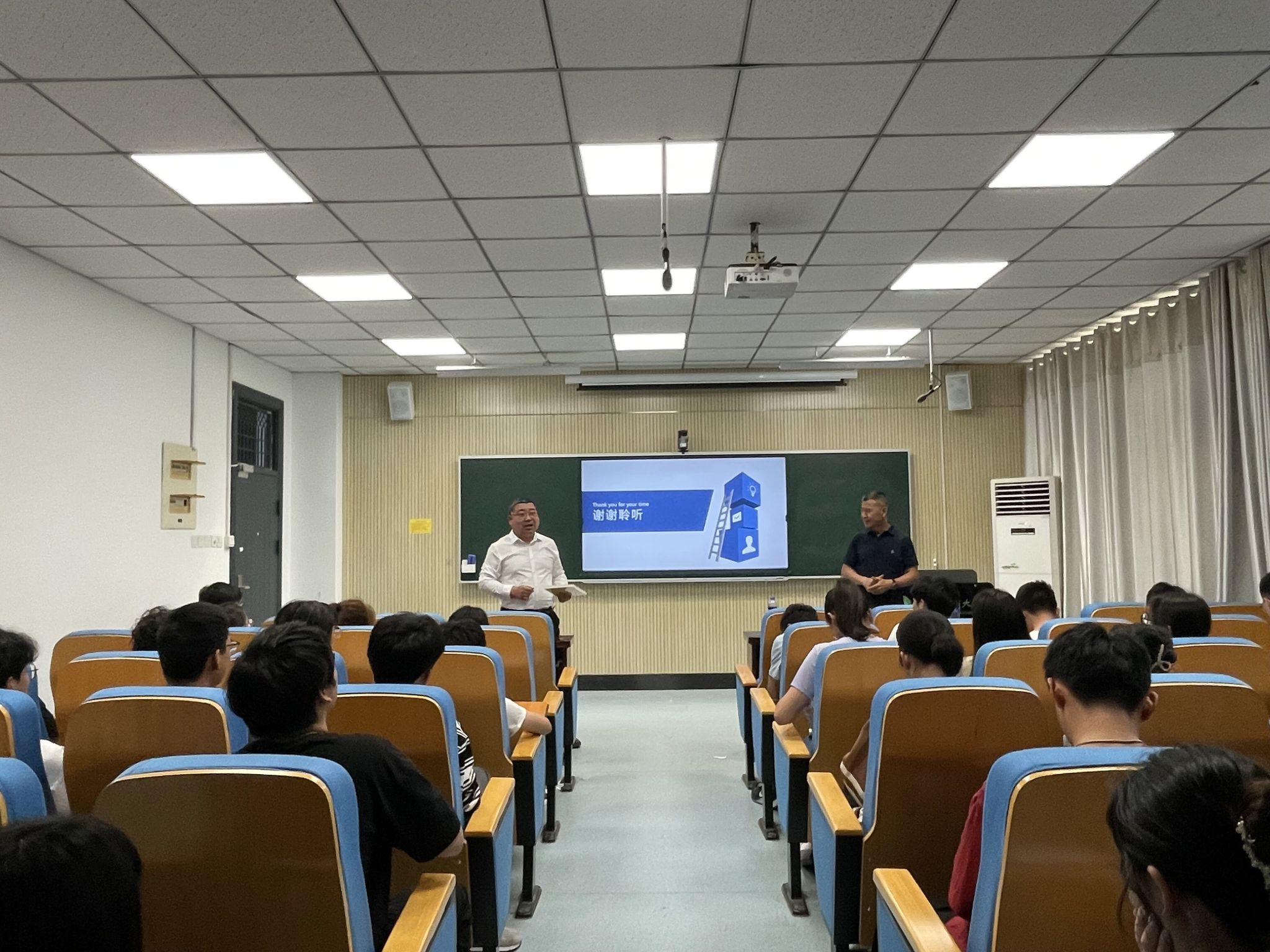 学院党委副书记闫大玮总结致辞中表示,2位校友以突出的工作成就以及高度的社会责任感和使命感,为大家呈现了一场精神盛宴,他希望同学们以优秀校友为榜样,学习他们战胜困难的勇气,永不言败的毅力以及干一行、爱一行、专一行的敬业精神,希望同学们尽早规划个人职业生涯,实干笃行,不负韶华,争做有理想、敢担当、能吃苦、肯奋斗的新时代好青年。(韩天才 一审:闫大玮 二审:甘传鹤)