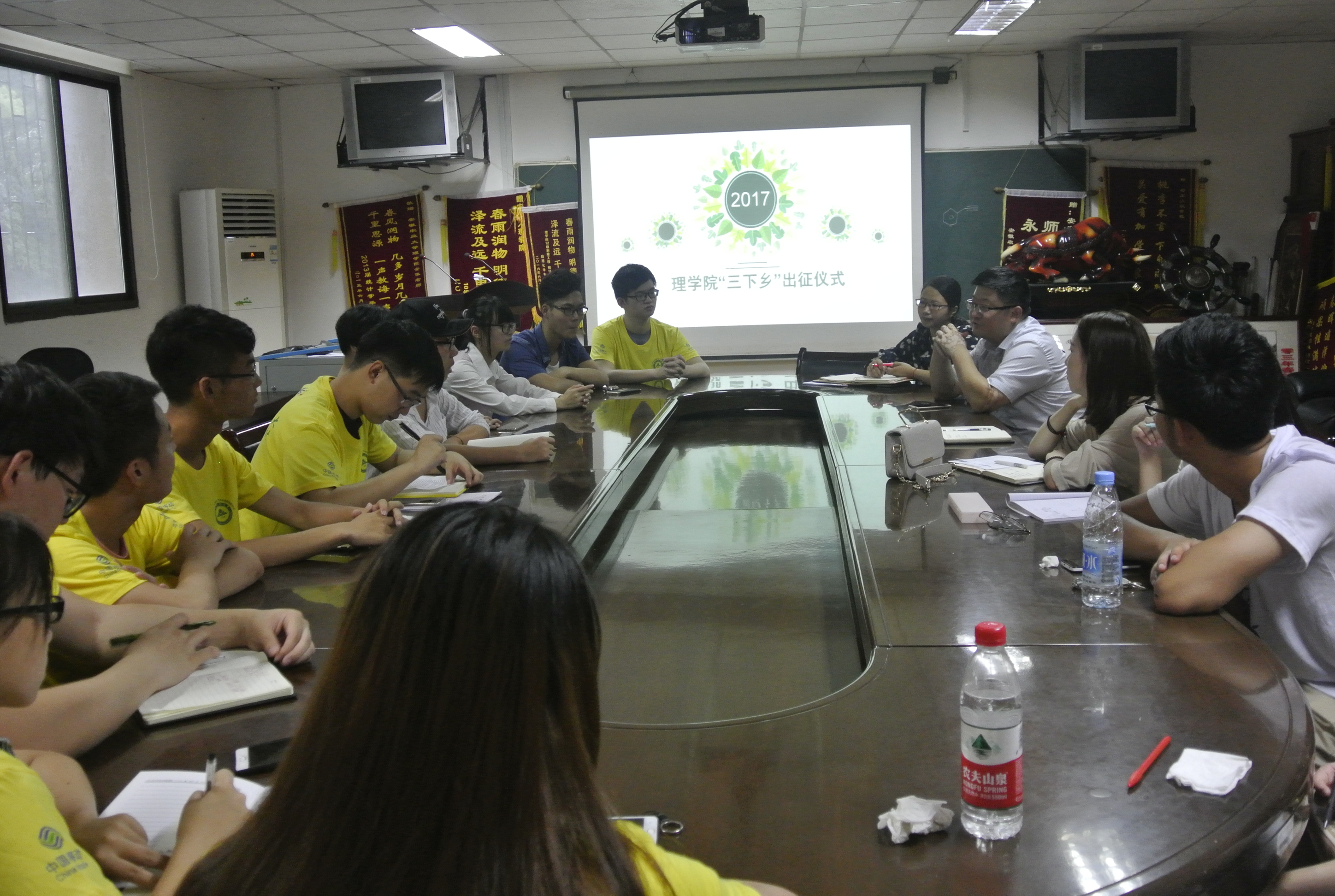 本网讯 7月5日中午,理学院2017年暑期“三下乡”社会实践活动出征仪式在二教会议室举行,学院党委副书记兼副院长韩弥明、各团队指导老师代表、团委老师及各实践团队成员参加仪式。