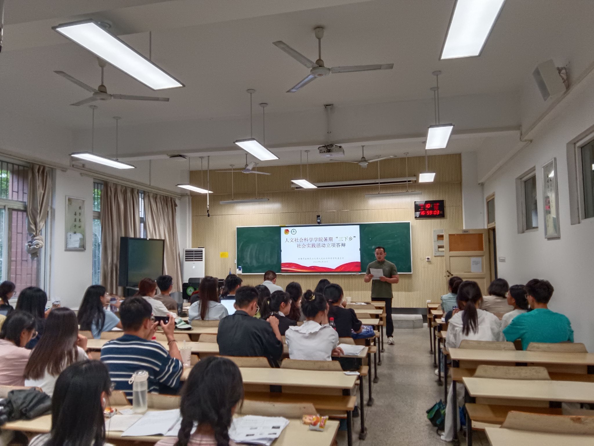 答辩前,吴永红总结了往年暑期“三下乡”工作成果,对申报的2023年暑期“三下乡”的26支团队前期工作表示充分肯定,要求人文学子要立足所学专业积极投身社会实践,按照“受教育、长才干、作贡献”的目标,聚焦习近平总书记给中国农业大学科技小院学生重要回信精神,充分了解社会, 认识国情,增强社会适应性,把理论和实际、学校与社会、课内与课外有机结合,在实践中增强发现问题、分析问题、解决问题的能力。