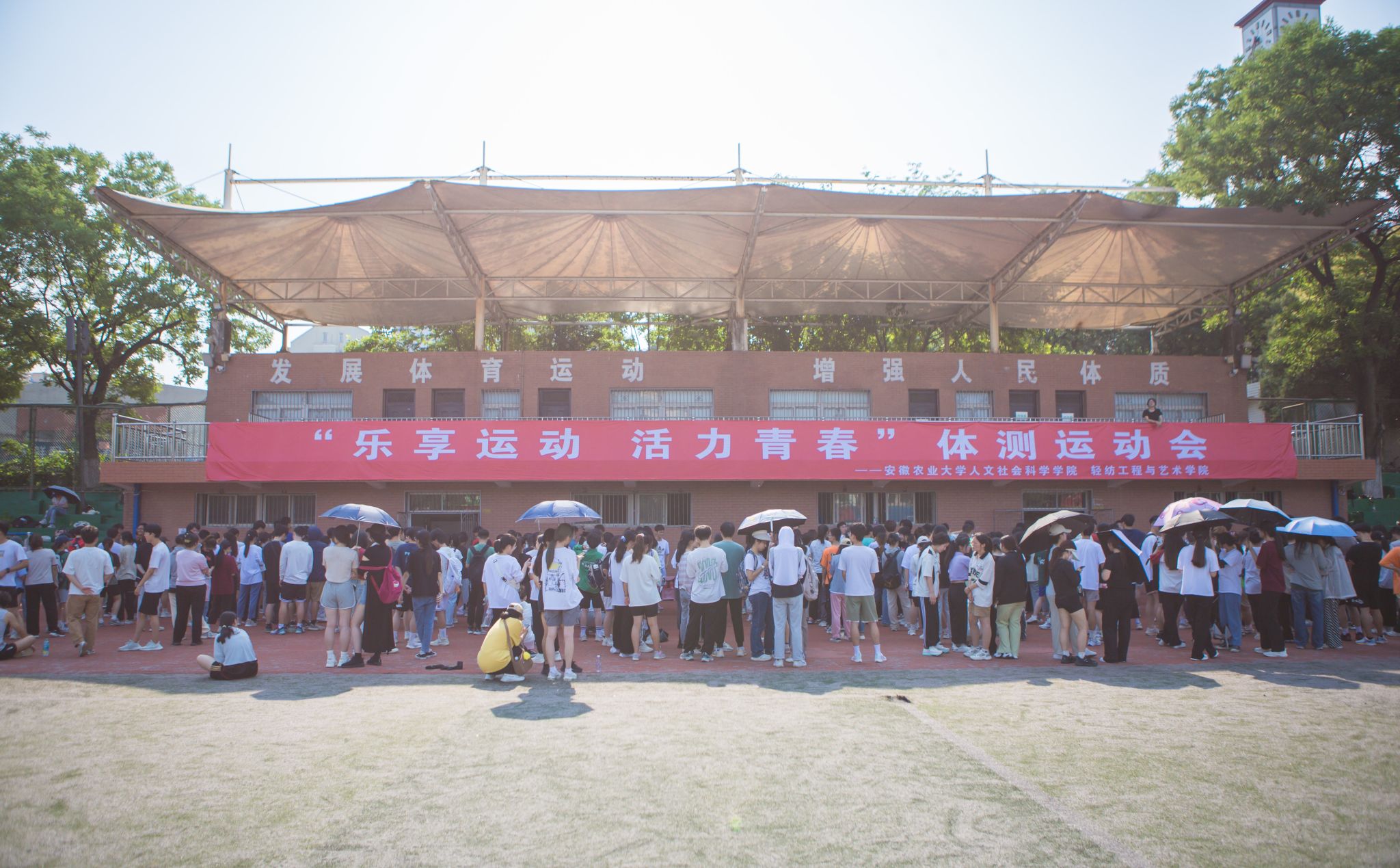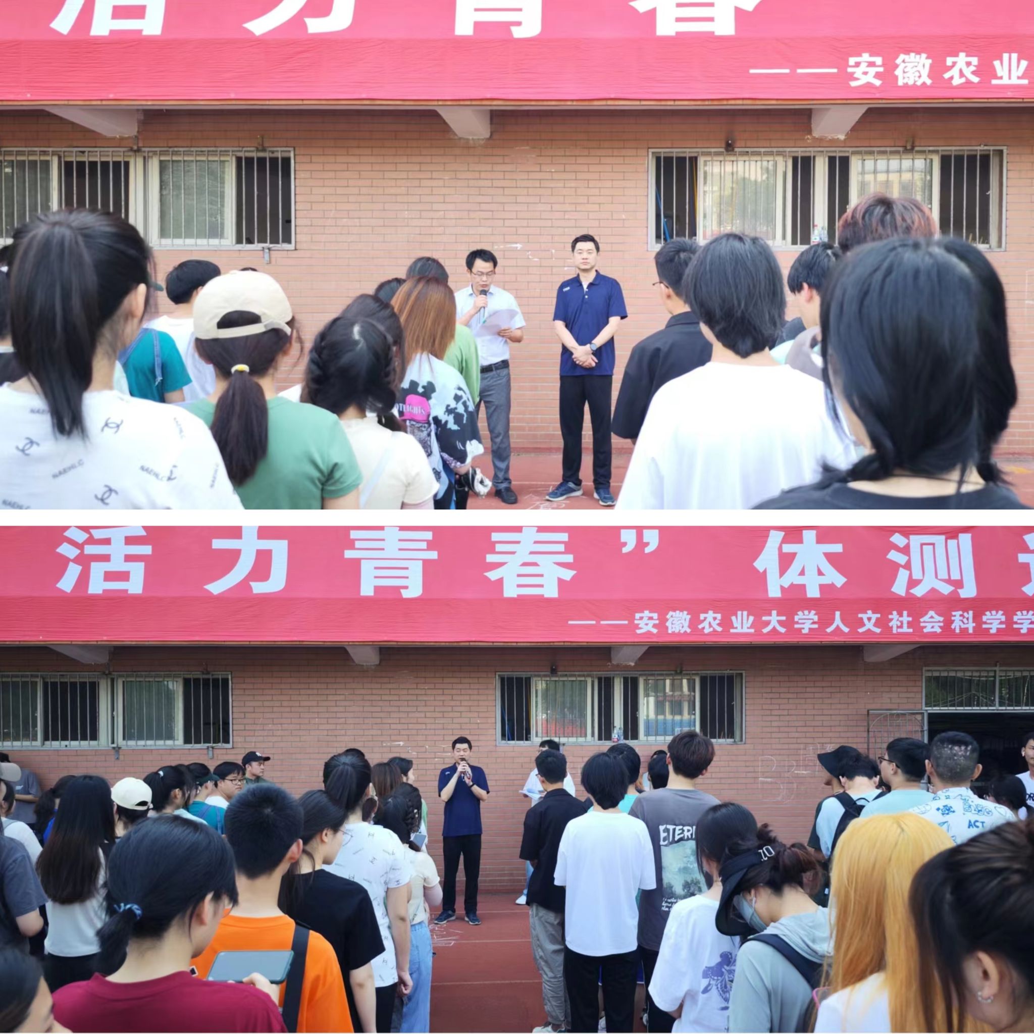 本网讯 为学习贯彻落实习近平总书记关于体育的重要论述,树立健康第一的理念,6月10号上午,人文社会科学学院与轻纺工程与艺术学院在校第一运动场联合举办“乐享运动 活力青春”体测运动会,人文社会科学学院党委副书记吴永红、轻纺工程与艺术学院党委副书记宋超、体育部岳保柱老师、学院专职辅导员、大一、大二本科生、研究生参加了此次活动。