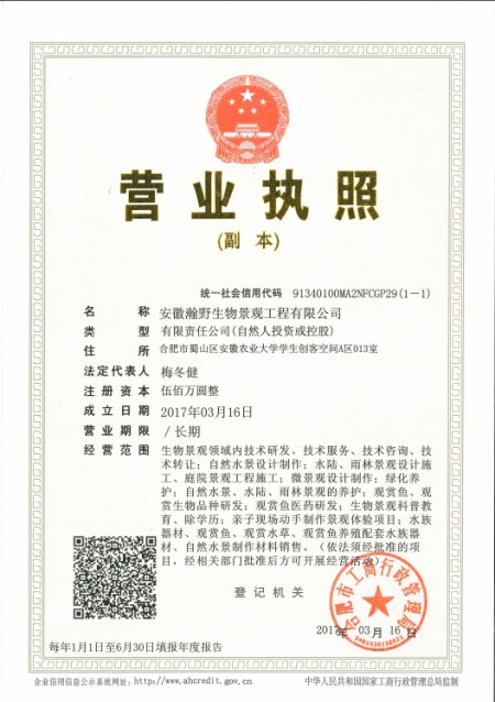 该公司主要经营范围是生物景观领域内技术开发、技术服务、技术咨询、技术转让;自然水景设计制作;水陆、雨林景观设计施工、庭院景观工程施工;微景观设计制作;绿化养护;自然水景、水陆、雨林景观的养护;观赏鱼、观赏生物品种研发;观赏鱼医药研发;生物景观科普教育、除学历;亲子现场动手制作景观体验项目;水族器材、观赏鱼、观赏水草、观赏鱼养殖配套器材、自然水景制作材料销售等。