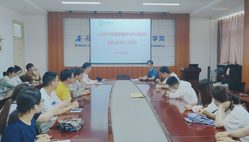 本网讯 6月14日中午,生命科学学院在十教418会议室召开团委理论学习中心组学习会暨团支部书记工作例会,学院团委理论中心组全体成员、本硕各班级团支部书记、新发展团员、学生会团工部全体同学参加会议,会议由院团委副书记主持。