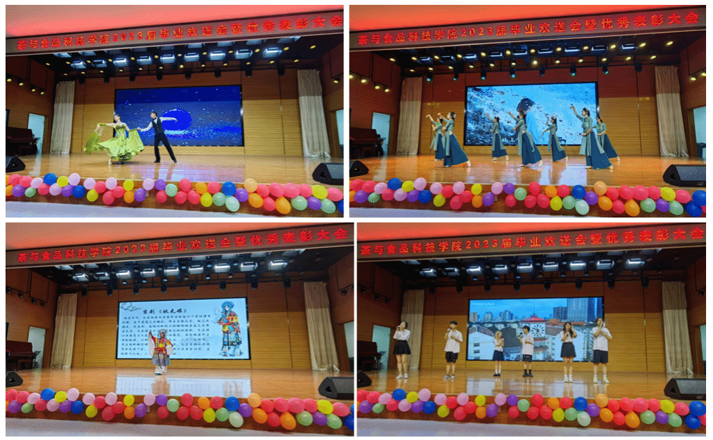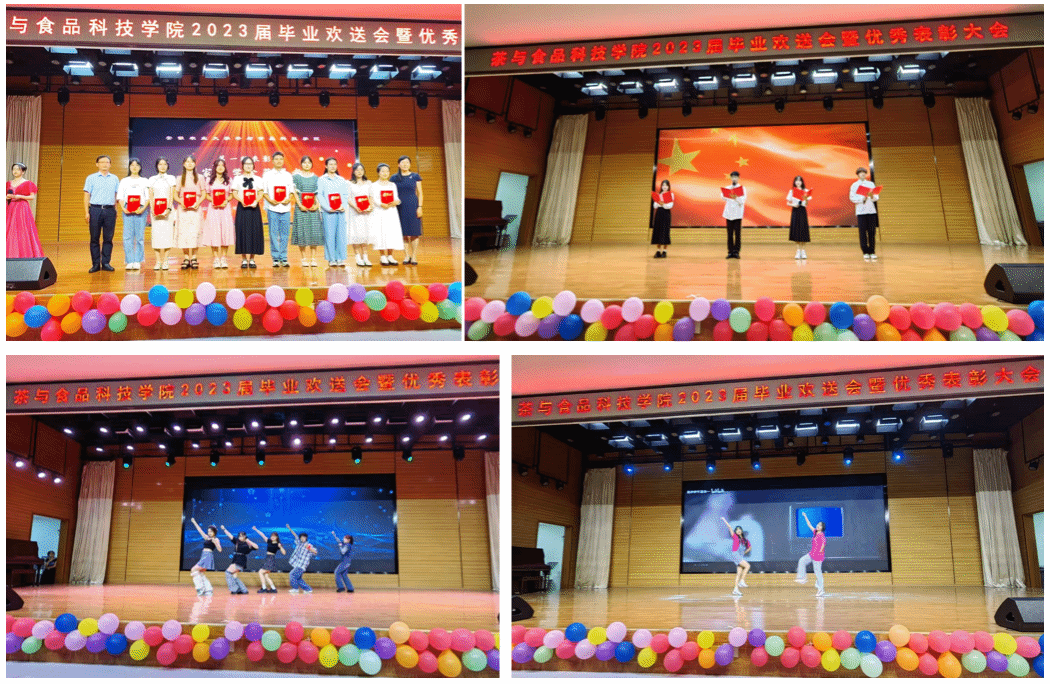 本网讯 青春绽放,梦想起航。又是一年毕业季,6月14日晚,食光易逝 相期于茶—茶与食品科技学院2023届毕业欢送会暨优秀表彰大会在欣苑食堂四楼小礼堂圆满举行。学院党政领导班子成员、各系部负责人、教师代表以及辅导员应邀出席,与毕业生共赏晚会。