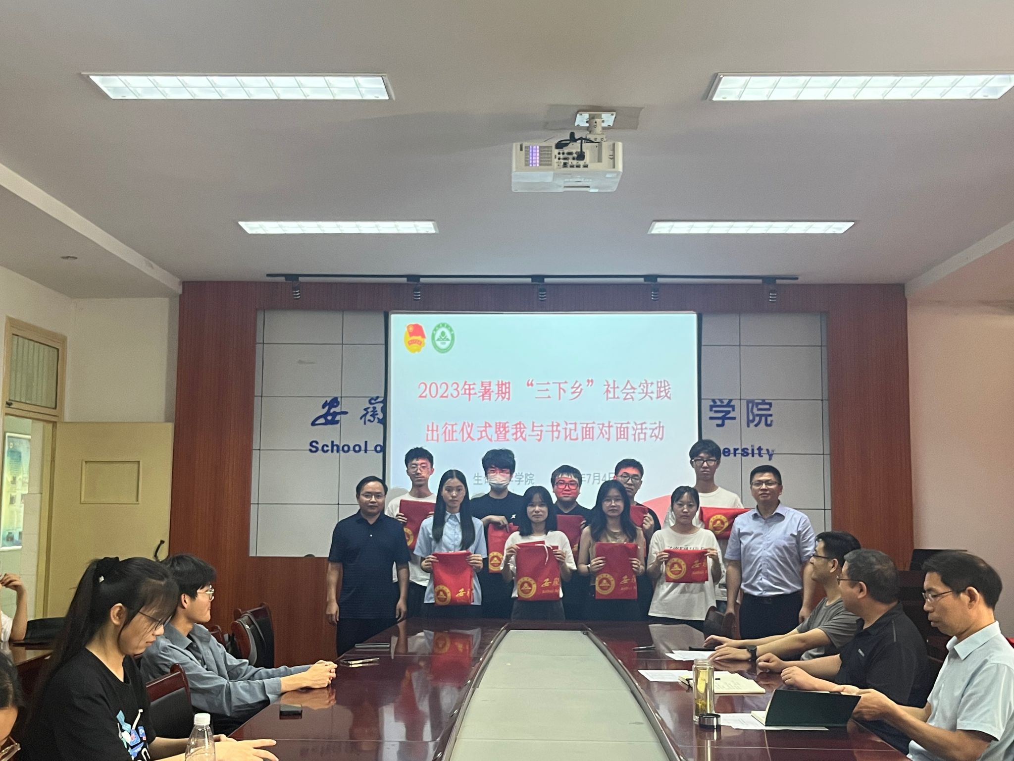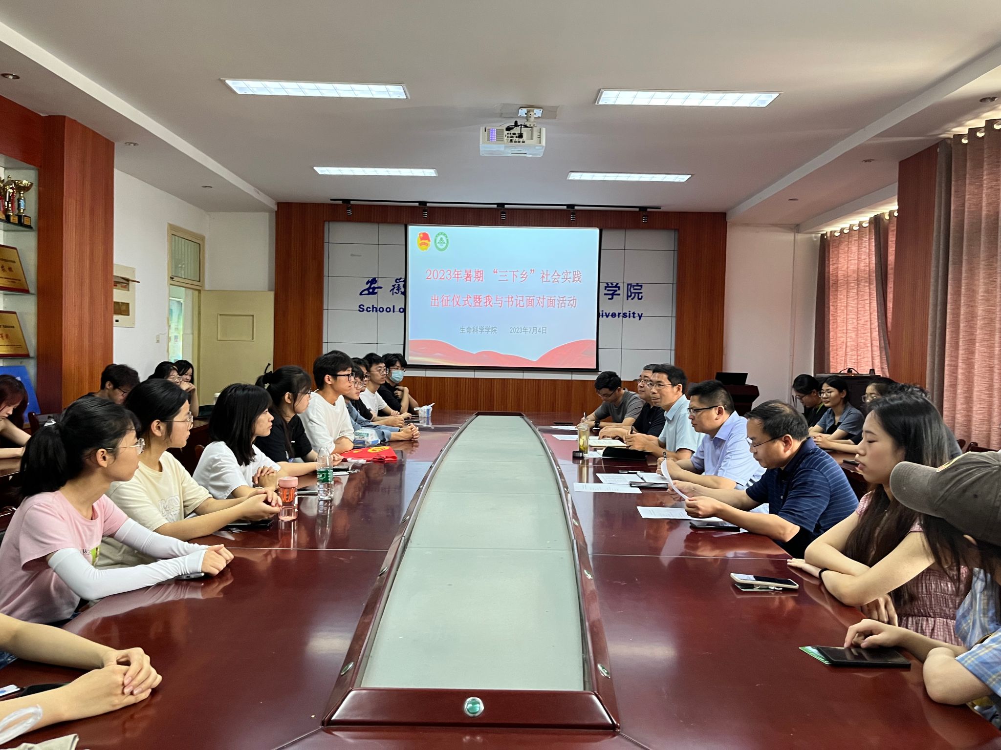 本网讯 7月4日上午,生命科学学院在十教418会议室举行2023年暑期“三下乡”社会实践活动出征仪式暨“我与书记面对面”活动,学院党政领导全员参加,学院4支校级团队、9支院级团队共计约50位同学参加了会议,会议由团委老师主持。