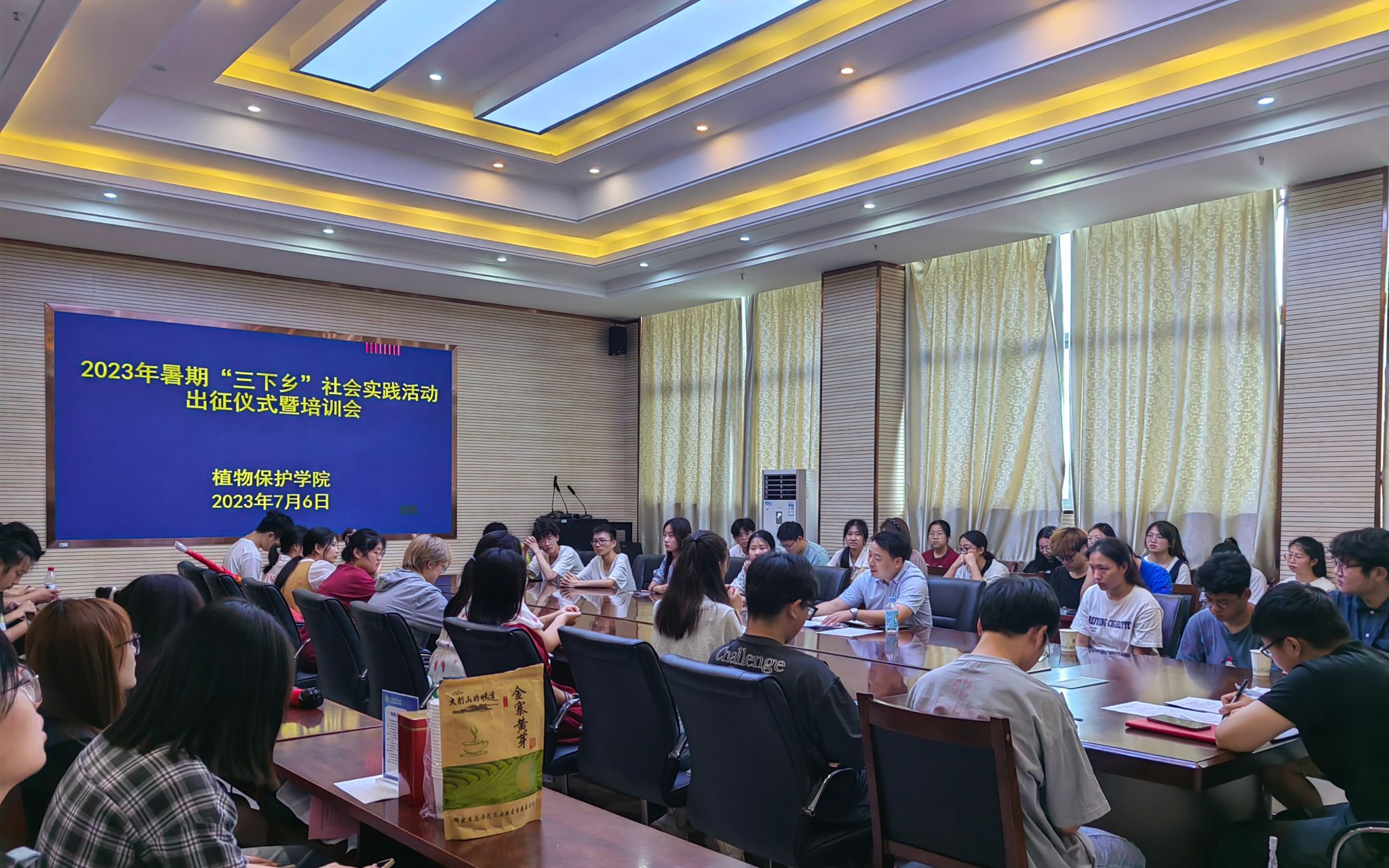 本网讯 7月6日,植物保护学院在中西部综合楼1213会议室举行2023年大学生暑期“三下乡”社会实践活动出征仪式暨培训会。各实践队成员及指导老师参加出征仪式,会议由学院党委副书记汪小强主持。