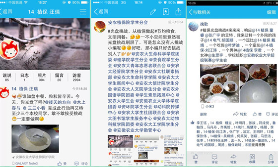 本次活动与当前风靡全球的“冰桶”挑战形式相似,由植物保护学院学生分会首先发起挑战,利用网络新媒体平台开展晒“光盘”活动,号召同学们拍下自己“光盘”的照片并@被挑战者,每个被@到的同学都需要接受挑战,晒出自己的“光盘”照片,被挑战者可以是学生或是学生组织。“光盘”挑战以轻松有趣的方式宣传“节约粮食、拒绝浪费”的理念,引导学生从自己做起、从小事做起,将节粮行动落到实处,从而逐步养成勤俭节约的文明行为习惯,活动凭借积极向上的活动内容和创新的活动形式在学生中掀起了一股热潮,取得了良好的效果。