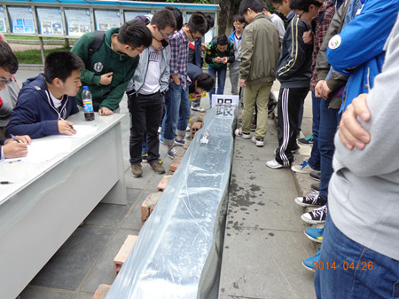比赛现场,气氛活跃、热闹非凡。同学们将精心准备、用心制作的快艇模型依次放在临时搭建的水池中,随着计时开始,快艇飞速的游向终点,赢得阵阵喝彩声。经过激烈角逐,最终来自工学院12车辆刘志国、潘珊和经济管理学院12旅管苏慧芸制作的模型以11.3秒的成绩摘得桂冠。本次比赛旨在培养学生的创新思维,锻炼学生的实践动手能力,更好的促进团队合作精神和竞争意识的强化,活动取得了良好效果。(通讯员:汪小强)
