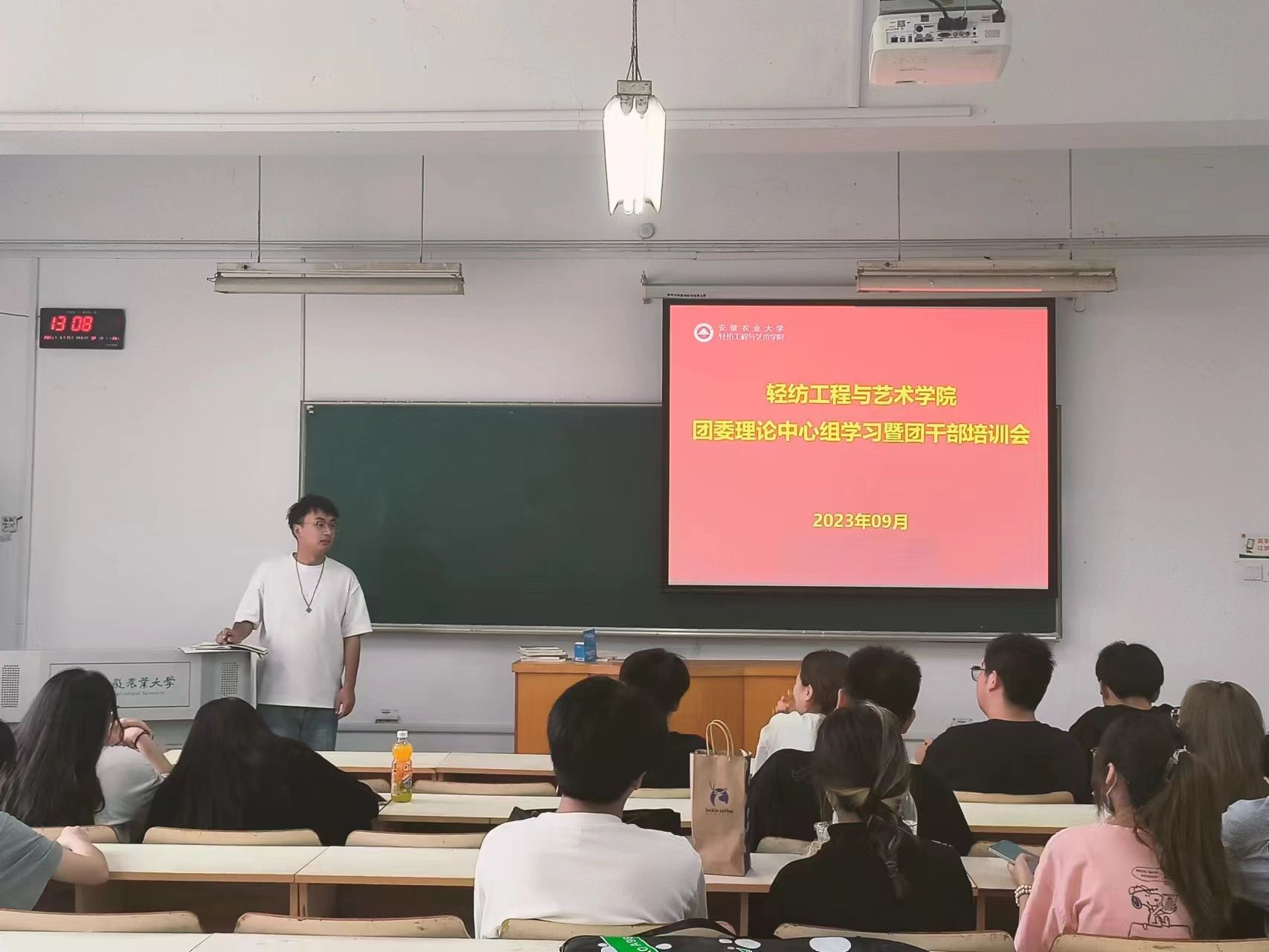 本网讯 为深入学习贯彻习近平新时代中国特色社会主义思想,培养有理想、敢担当、能吃苦、肯奋斗的新时代好青年,9月18日,安徽农业大学轻纺工程与艺术学院团委在勤学楼212组织召开团委理论中心组学习暨团干培训会。