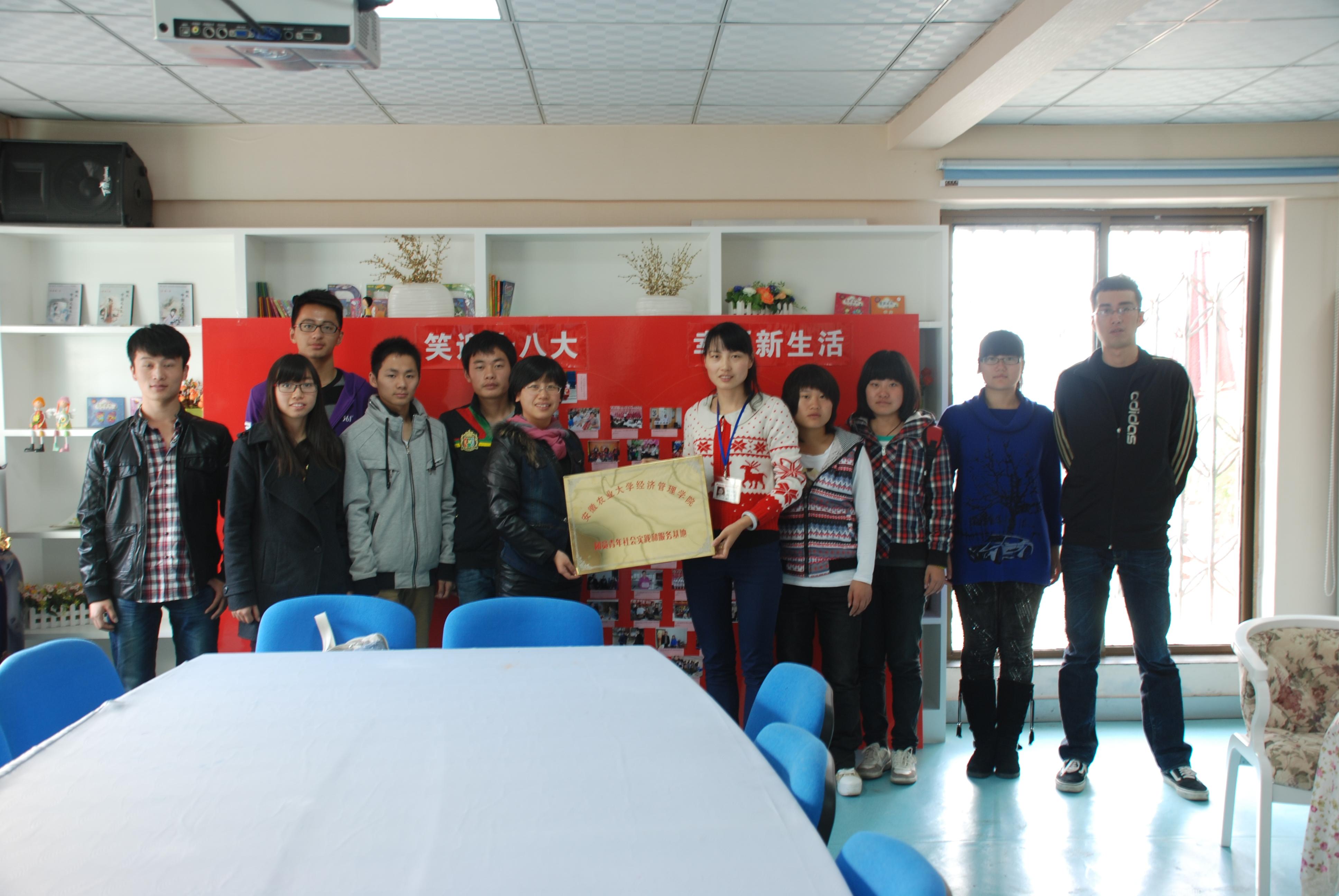 社区工作人员充分肯定了我院选派的挂职学生干部的表现,并热切期盼年轻的志愿者能参与到社区服务、管理工作中。院团委相关老师表示希望通过社区这个平台,能让更多的学生深入基层、了解基层、服务基层,提高服务社会的意识,锻炼服务社会的能力。随后双方就下一阶段的主要工作内容、如何开创社区特色志愿工作等展开了讨论。最后,进行了安徽农业大学经济管理学院团员青年社会实践和服务基地的挂牌。(经济管理学院 杨金丹)