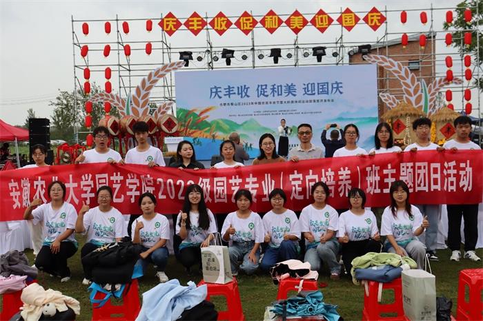 刚刚结束军训生活的2023级园艺(定向培养)专业的18名同学,周六一大早便乘车来到了合肥市蜀山区“中国农民丰收节”暨大岭南休闲运动部落首开发布会的现场,在和美乡村开展一场别具“农”味的主题团日活动。和他们一起前往的,还有学院“小莓好”创新创业团队,今天他们将成为一名“新农人”——新村民计划“青春合伙人”,用自己的青春力量助力乡村振兴。