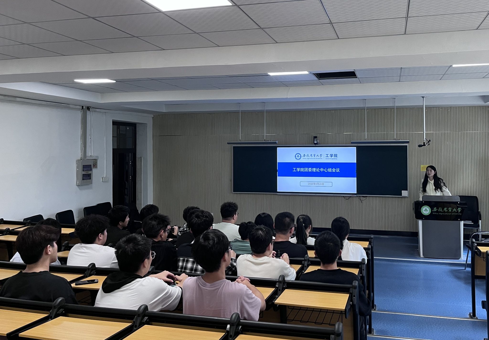本网讯 9月26日中午,工学院开展九月份团委理论中心组会议暨团干部学习会,学院团委负责老师主持,团委委员、学生会功能性团支部参加会议。
