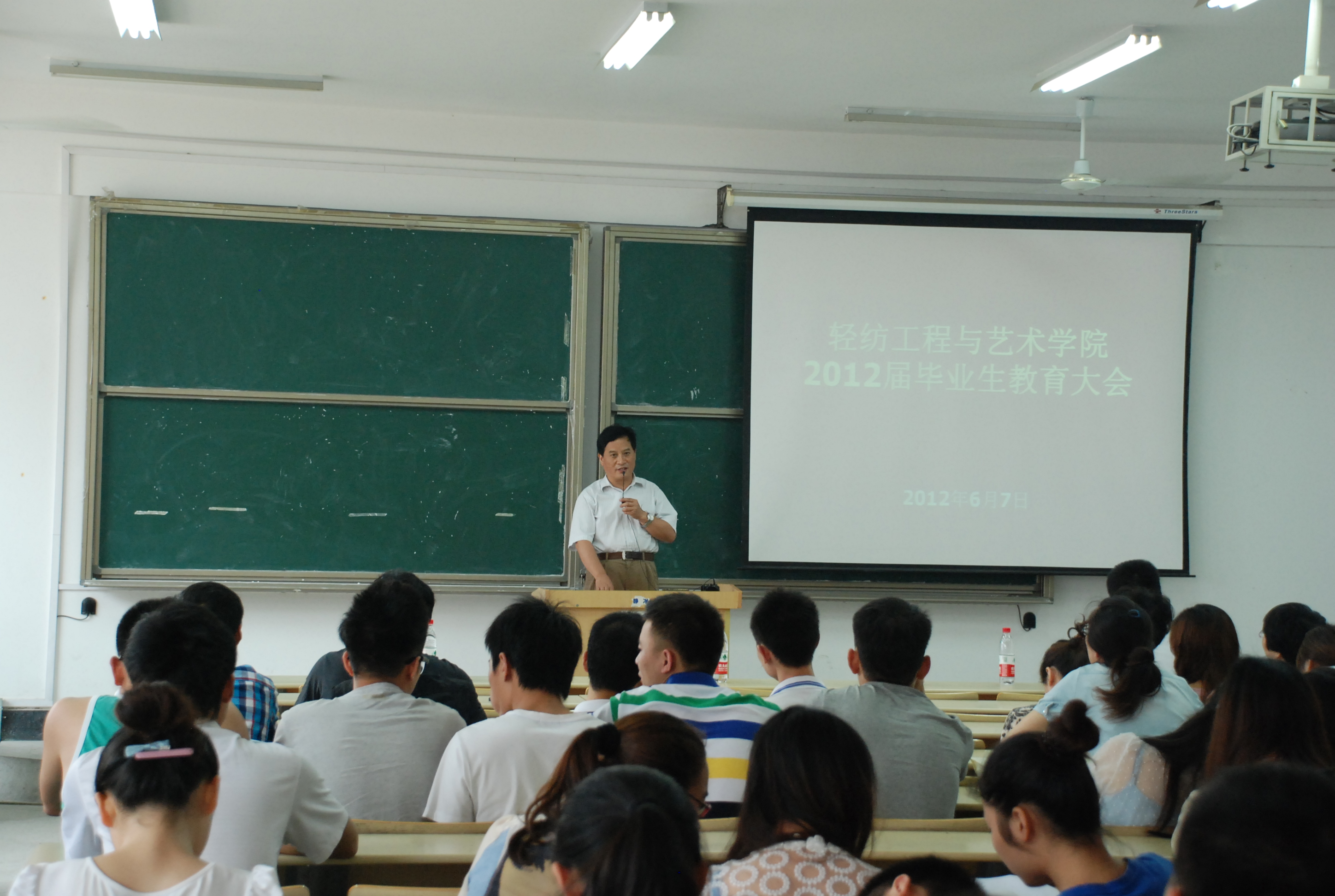 6月7日,轻纺工程与艺术学院在经济楼308室举办2012届毕业生毕业教育大会。该院党委书记束志高、院长黄晨、副书记王冬平、副院长杜兆芳等领导出席了会议,团委老师、毕业班班主任和全体毕业班学生参加了会议,会议由王冬平同志主持。