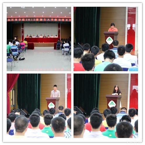 最后,院党委丁金锁书记在讲话中希望新同学认真思考两个问题:如何充实度过大学时光和如何成为一名合格的大学生,并提出了五点要求:一是要求同学们坚定信念,把握方向;二是要求同学们转变角色,适应环境;三是要求同学们珍惜时间,勤奋学习;四是要求同学们积极上进,立志创新;五是要求同学们勇于实践,全面发展。丁金锁书记相信所有2012级新生本着团结、勤奋、求实、创新的精神,抱着敬业、乐业、创业的态度,自尊、自爱、自强、自立,就一定会成为一名党和国家需要的合格人才。