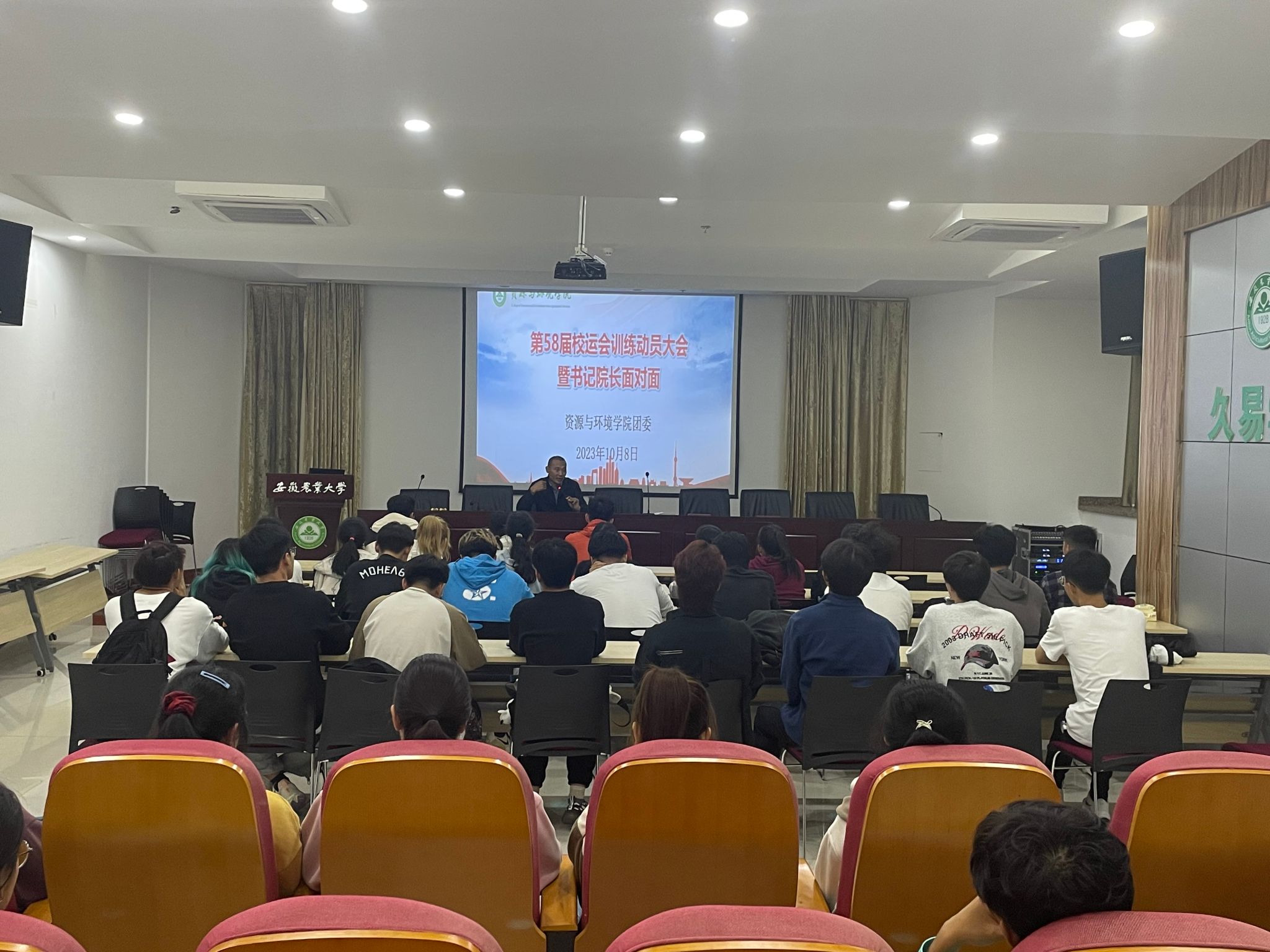 本网讯 10月8日晚,资源与环境学院在中西部综合久易学术报告厅举行第58届田径运会动员大会暨“我与书记院长面对面”活动,学院党委副书记、纪委书记、副院长姚洪章出席会议,学生分会骨干、新生运动员及学生代表参加会议,会议由学院团学负责老师主持。
