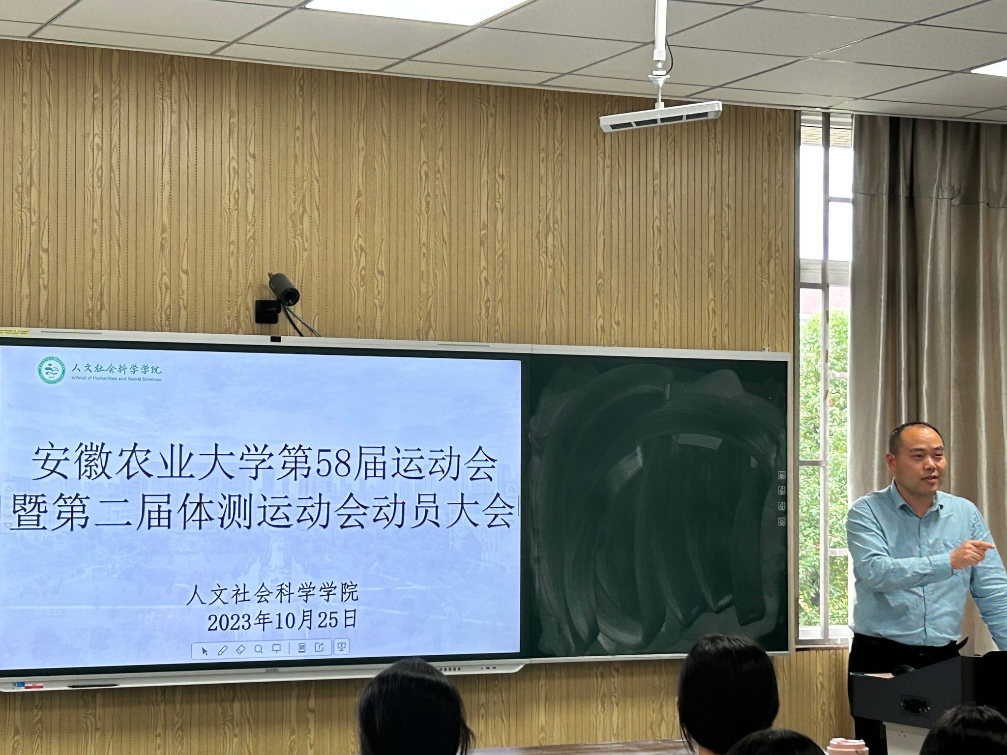 本网讯 为调动运动员训练积极性,增强运动员信心,保障运动会期间各项工作有序进行,10月25日下午,人文社会科学学院召开第58届运动会暨第二届体测运动会动员大会。学院副院长单国雷、体育部副教授岳保柱、全体运动员和院学生会工作人员参加大会。会议由学院团委负责老师主持。